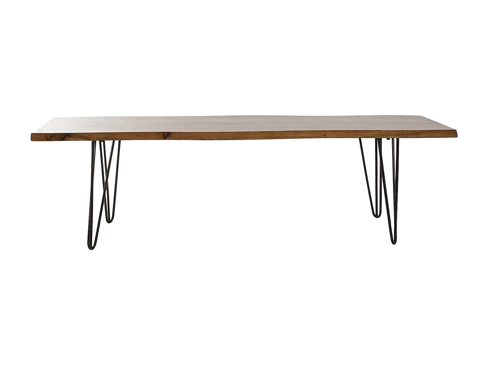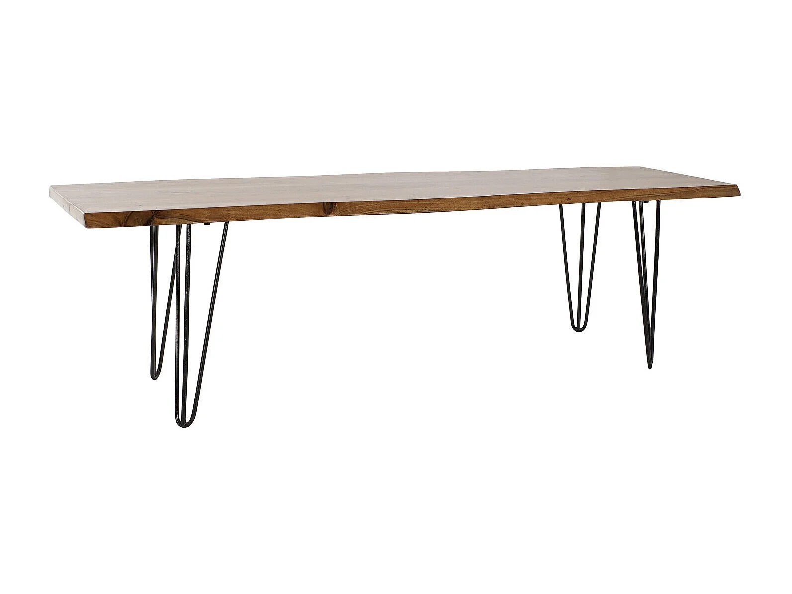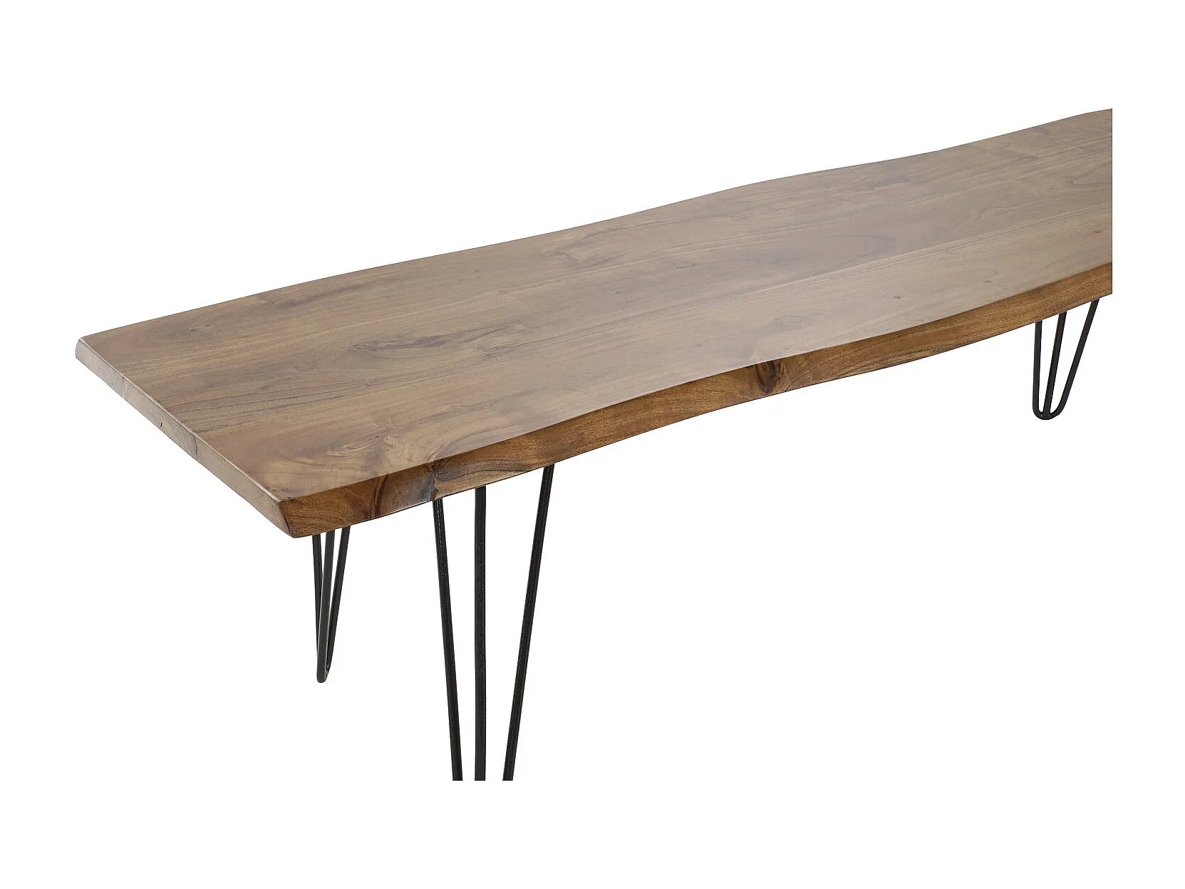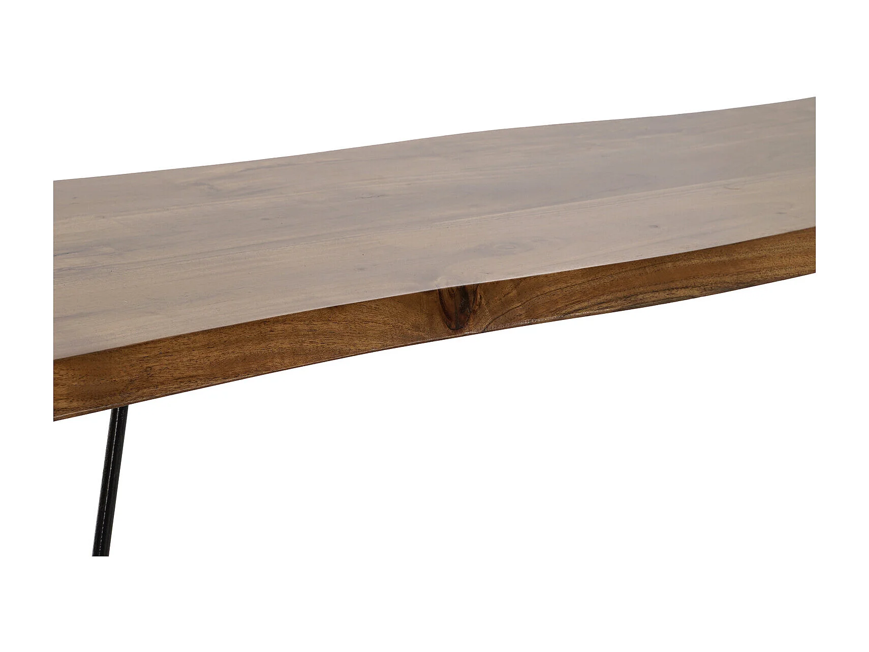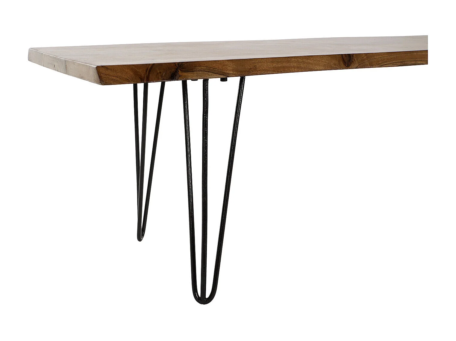 Penteadeira de metal em acácia, 160 x 40 x 46 cm, cor natural.