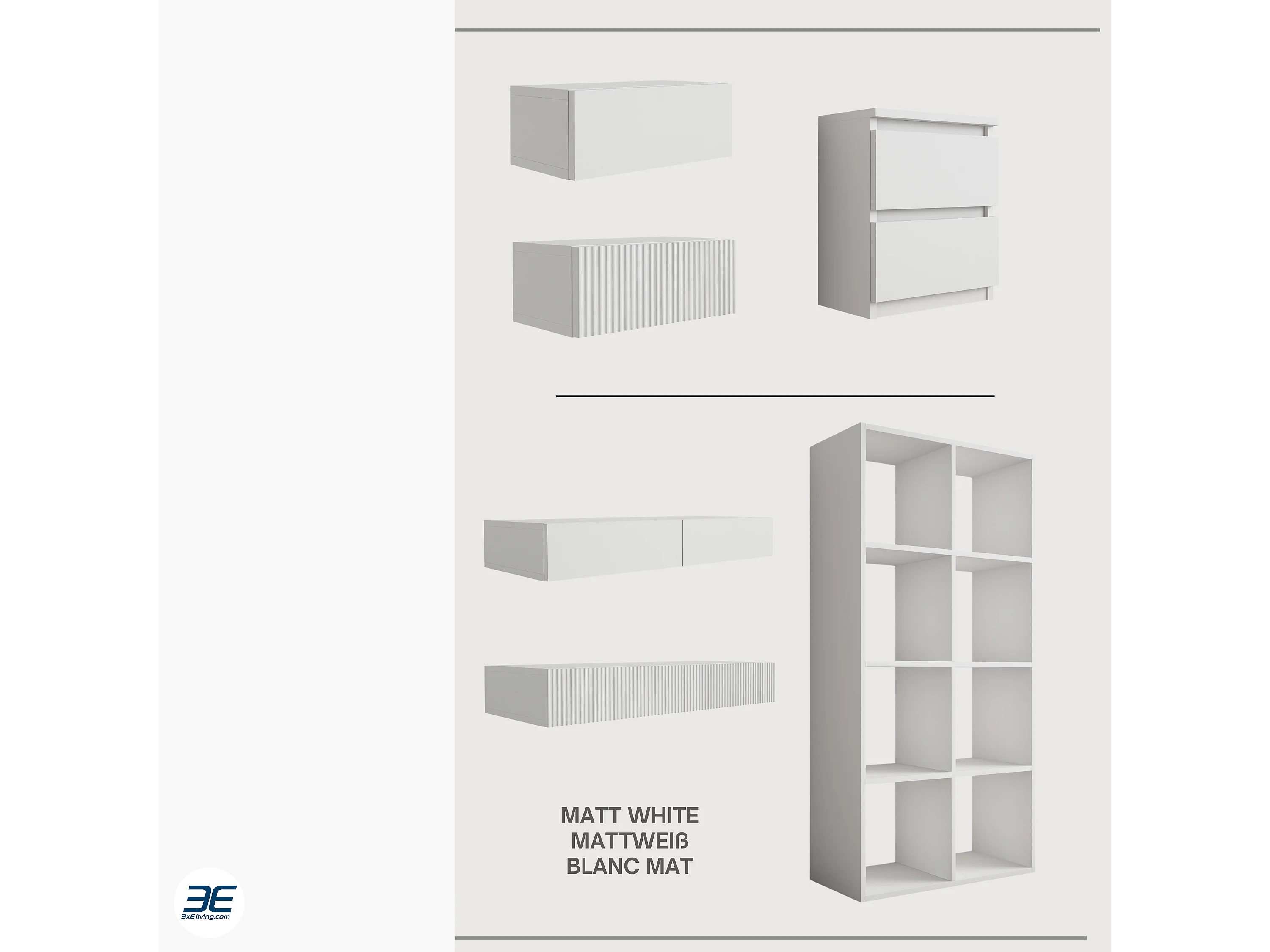 Penteadeira suspensa com duas gavetas, frente canelada - Cor: Branco, 100 x 40 x 16 cm