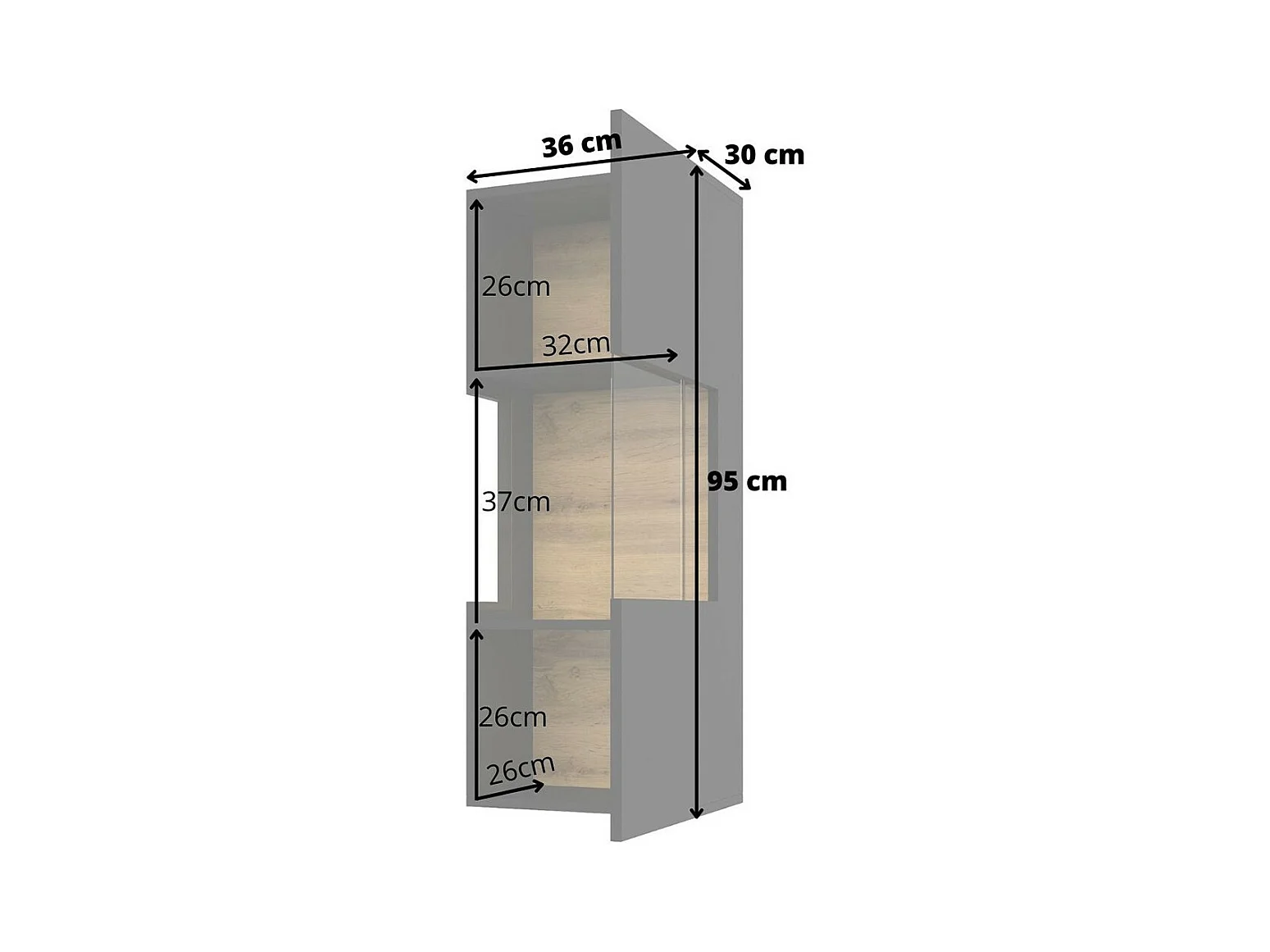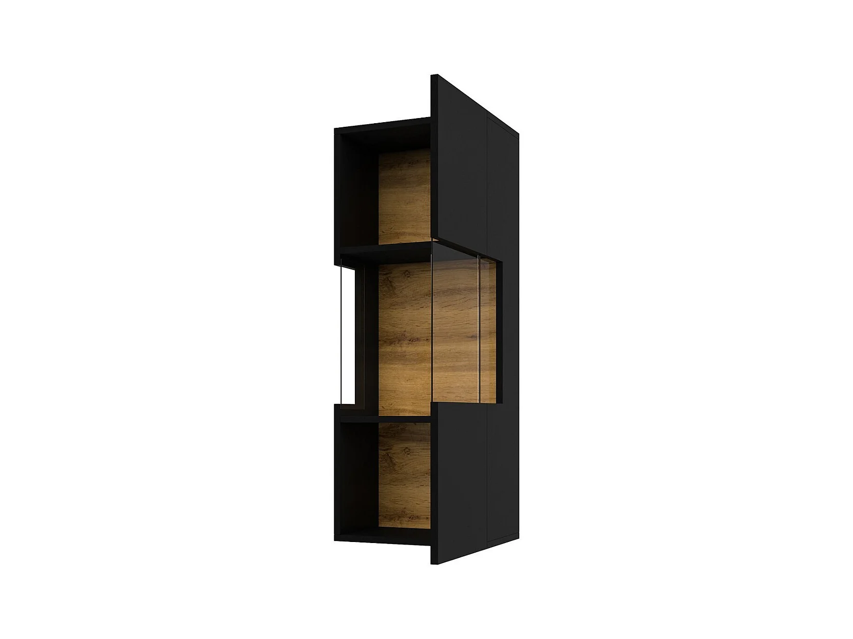 Vitrina 1 porta parcialmente envidraçada coleção EVA. Cor preta e carvalho.