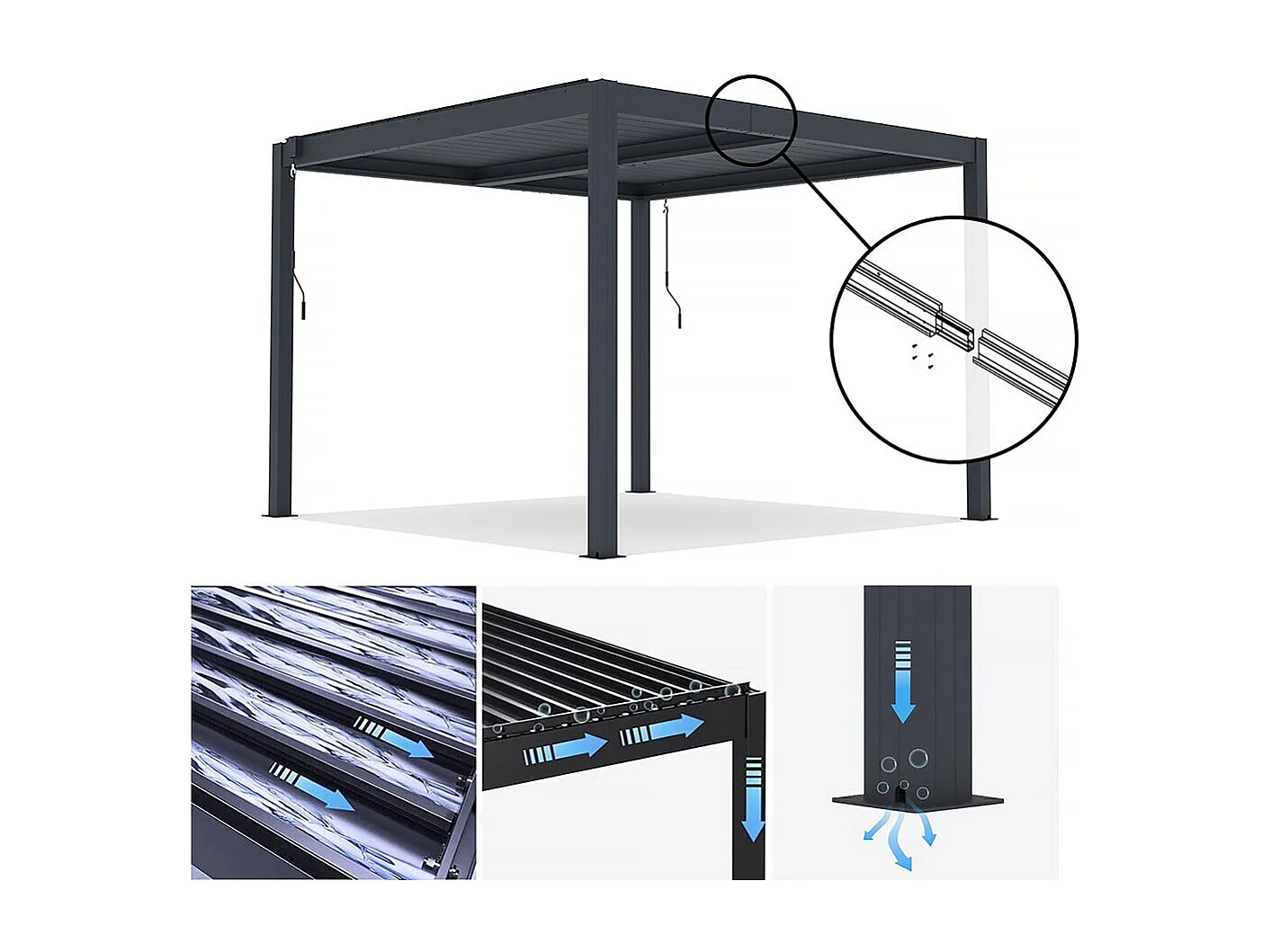 Pérgula bioclimática em alumínio "Windsor" - 3 x 3 m - Antracite