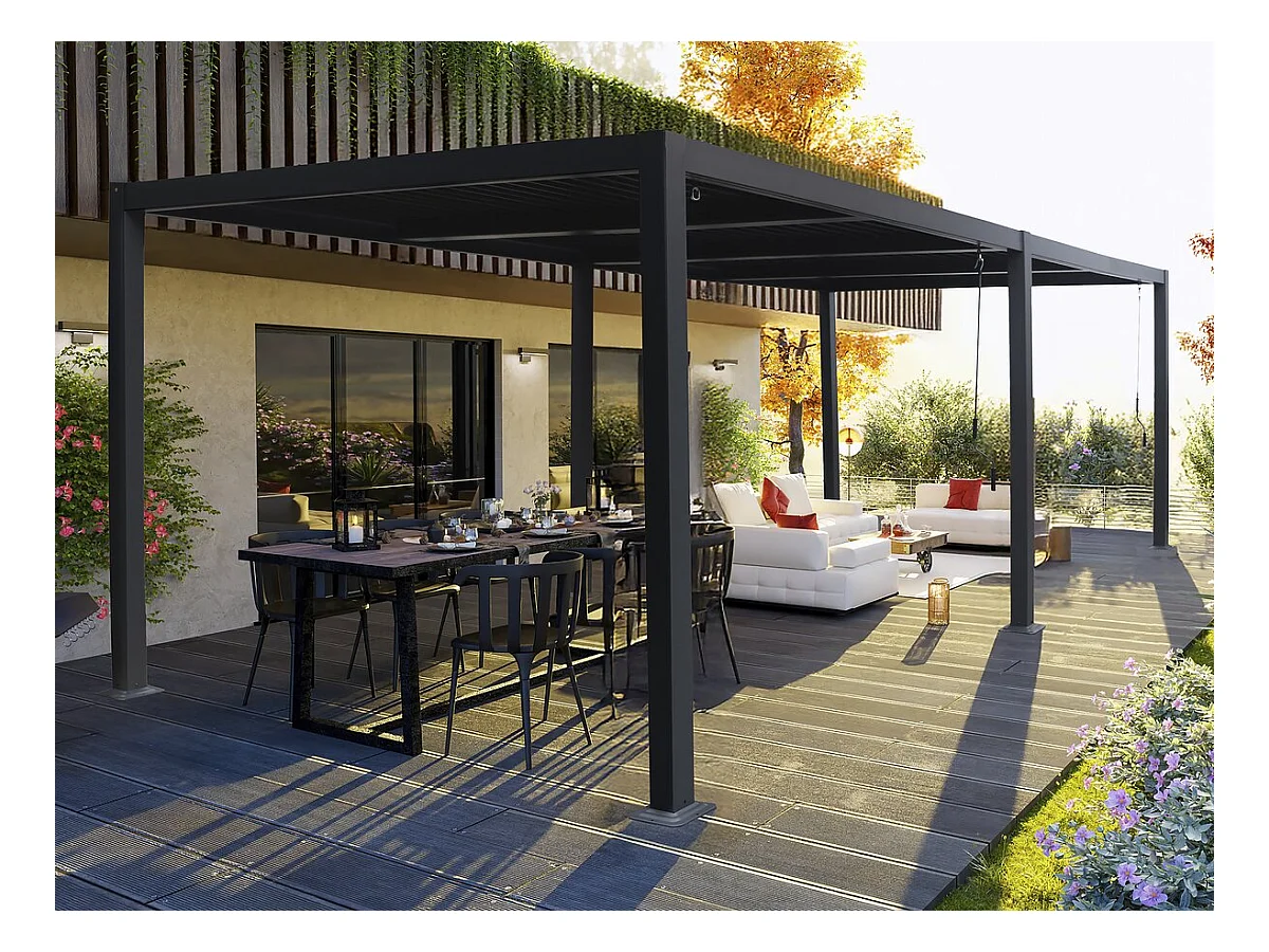 Pérgola bioclimática autoportante elétrica em alumínio com lâminas orientáveis 12 m² antracite - AMADORA