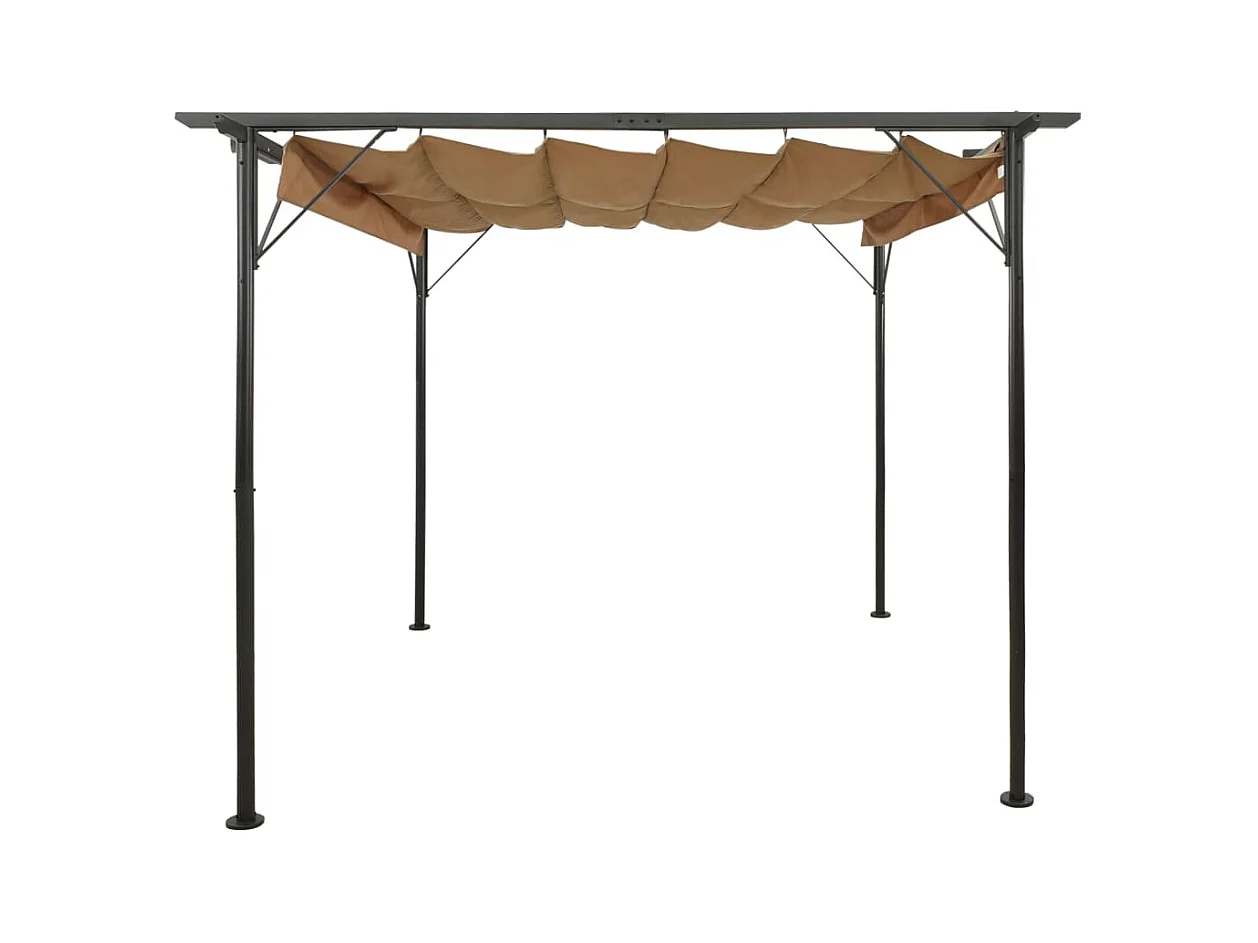 Gazebo jardim telhado retrátil 3x3 m 180 g/m² cinza-acastanhado PT409260