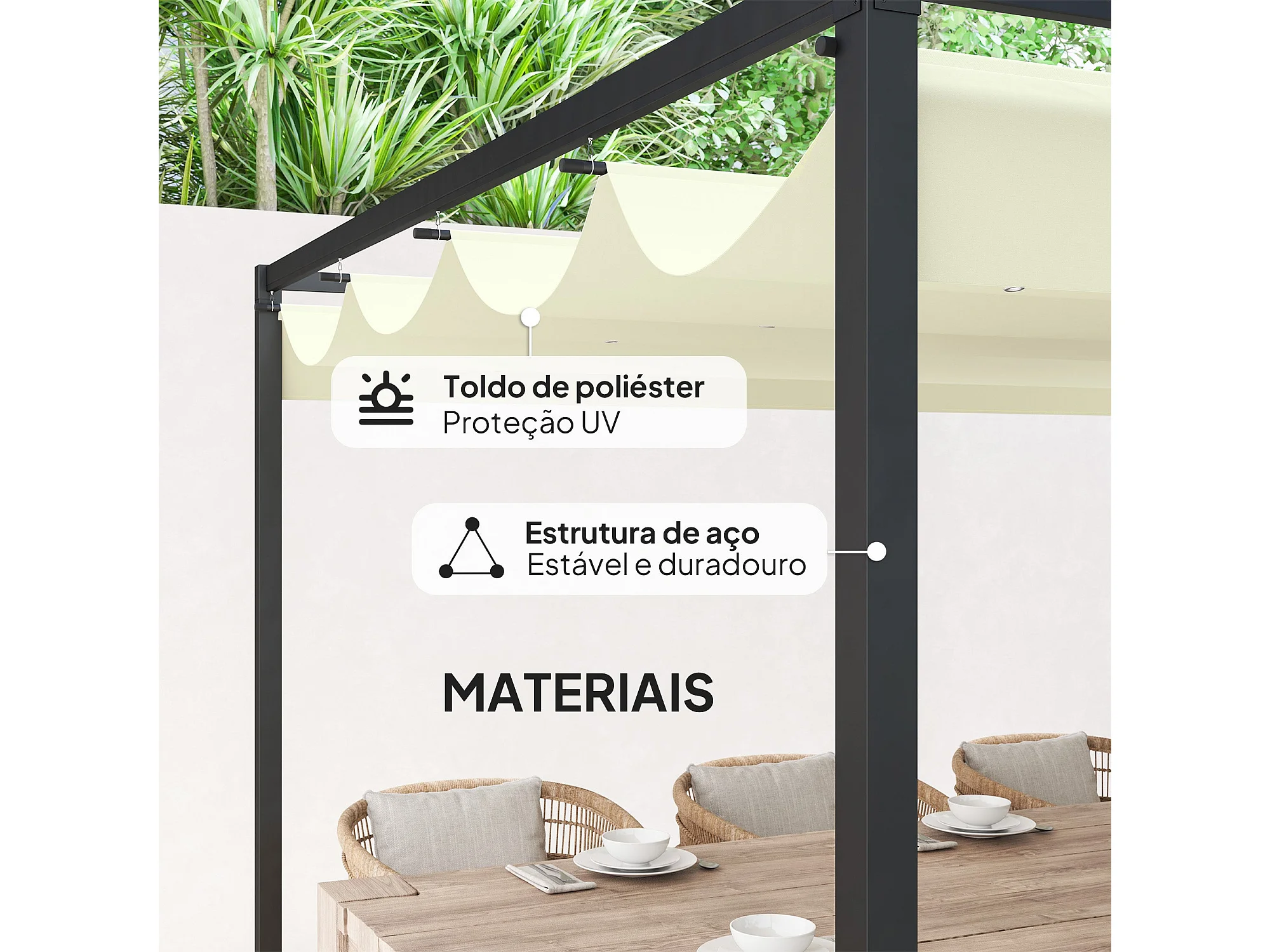 Pérgola Retrátil Madrid 400x300cm com Teto Poliéster Anti-UV em Creme
