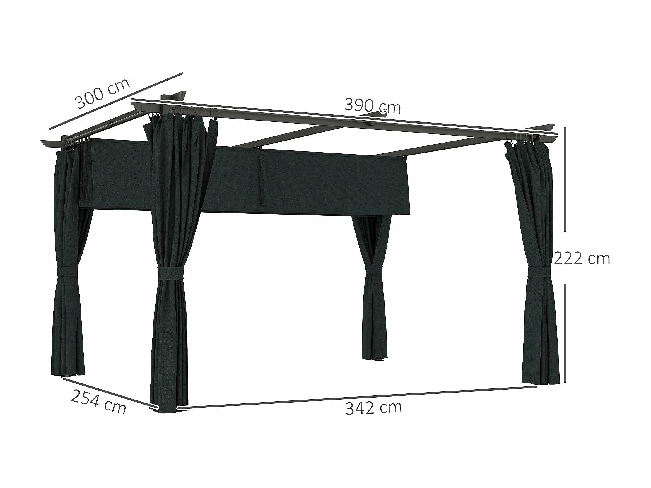 Pérgola Retrátil Reims 3,9x3,0x2,2m com Teto em Poliéster Anti-UV para Espaços Externos Elegantes