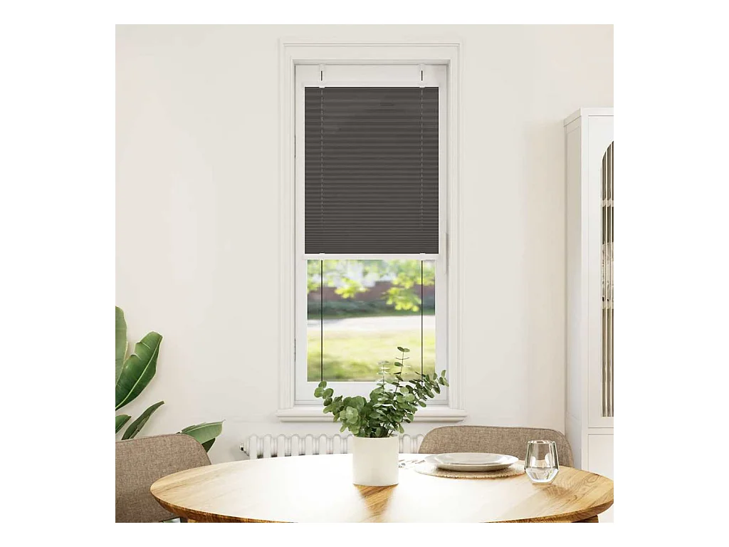 Persiana plissada preta 45x150 cm largura tecido 44,4 cm poliéster