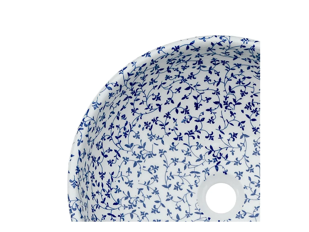Pia de bancada redonda Φ41x14 cm cerâmica azul e branco PT156411