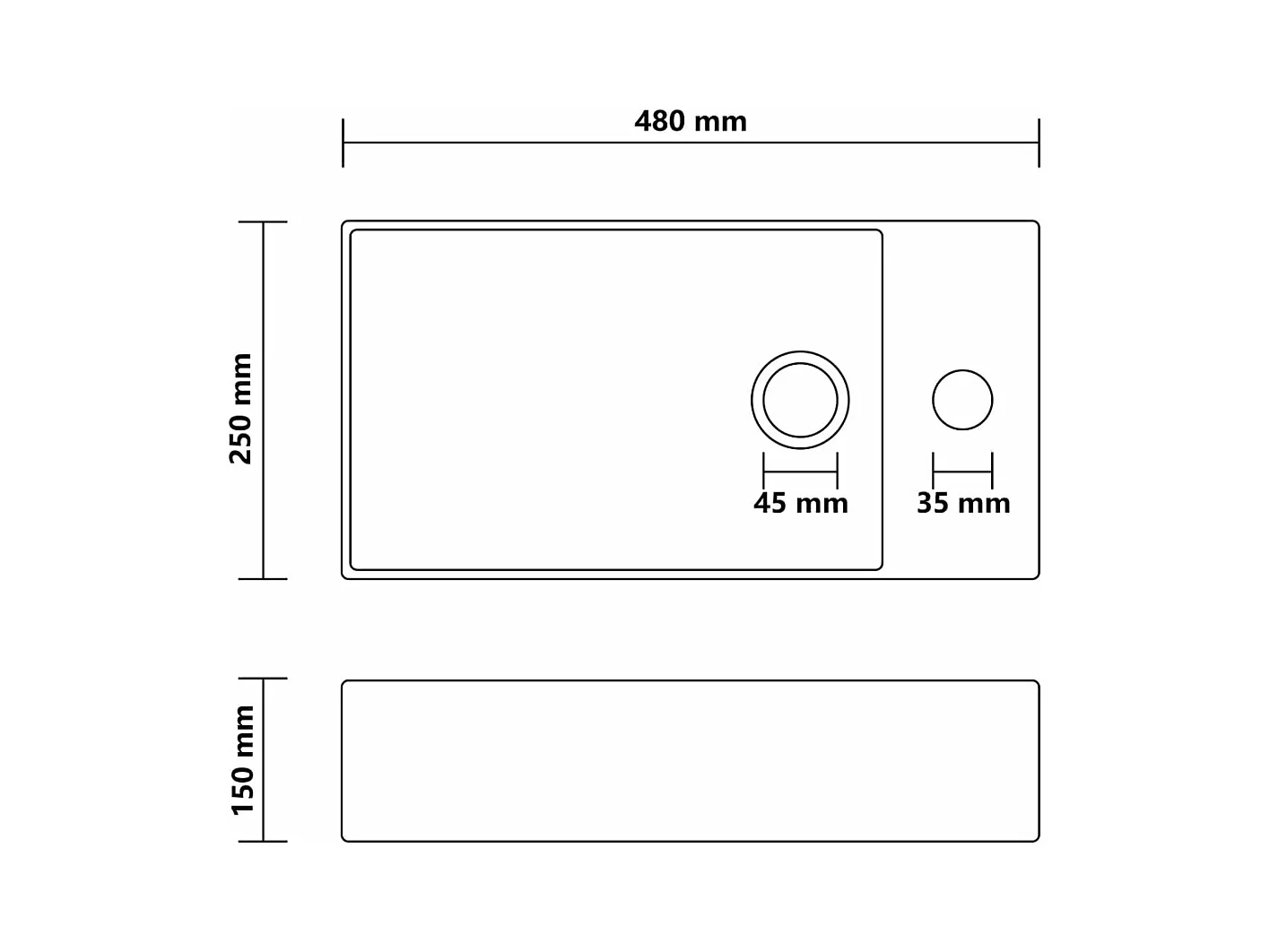 Lavatório com furo para torneira em cerâmica Preto 51,5x38,5x15 cm