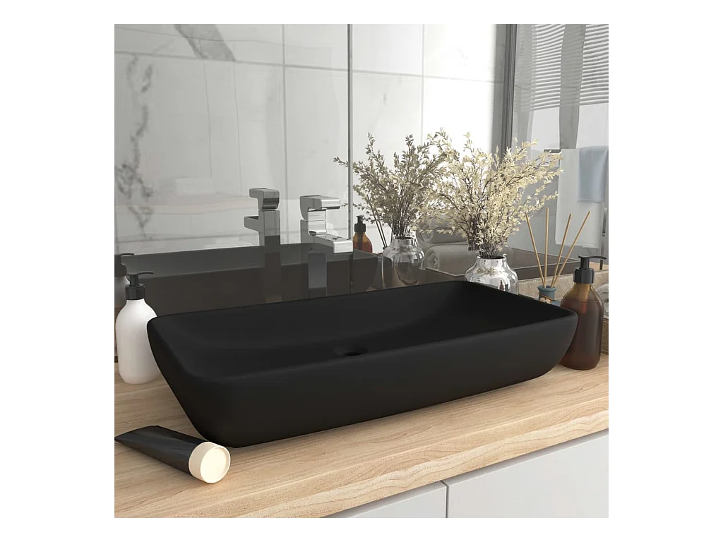 Pia retangular luxuosa preta fosca 71x38 cm cerâmica