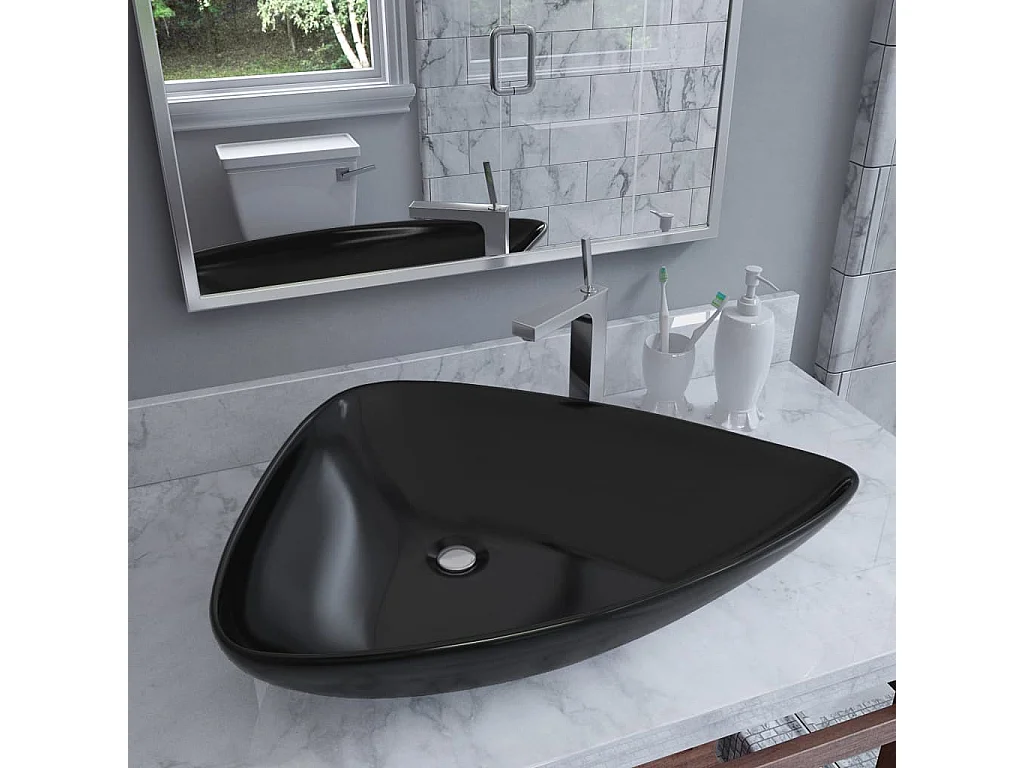 Pia triangular de cerâmica preta 645 x 455 x 115 mm