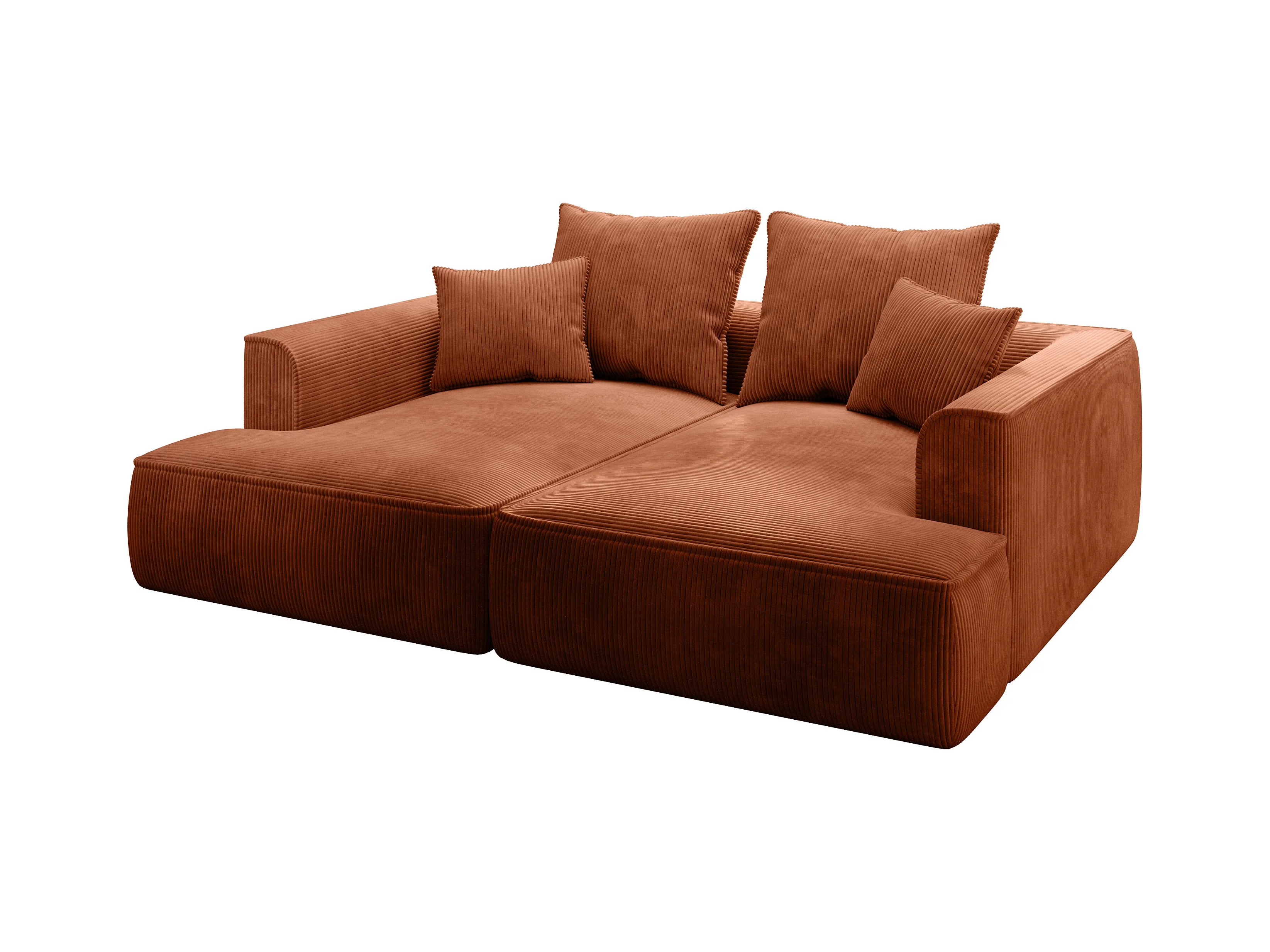 Sofá de 3 lugares conforto assento profundo em veludo canelado terracota - PINETA