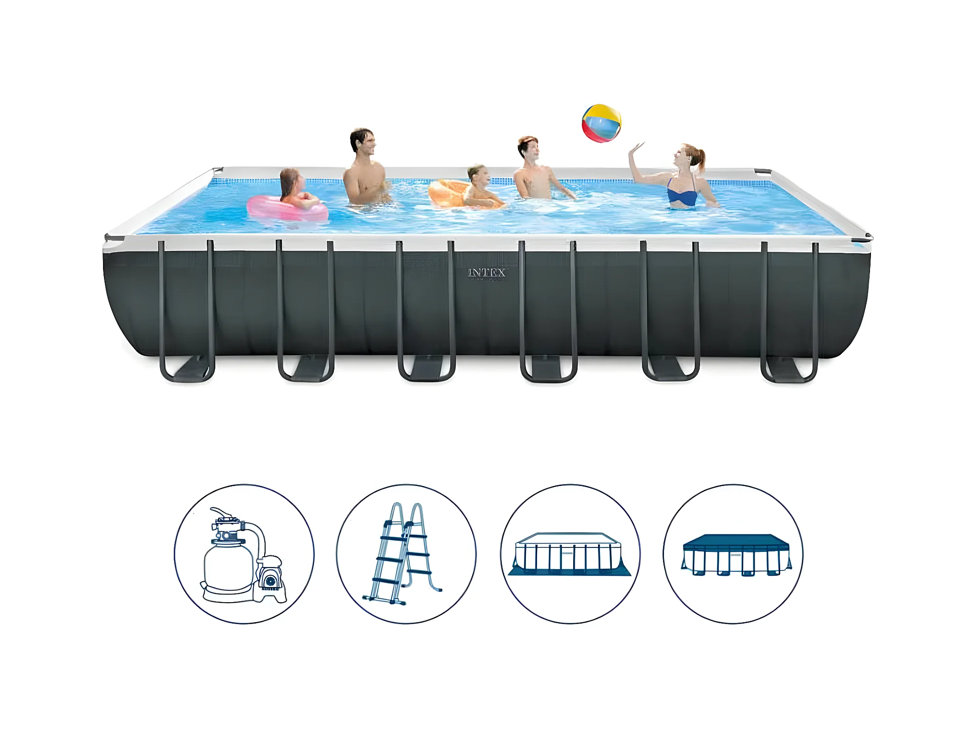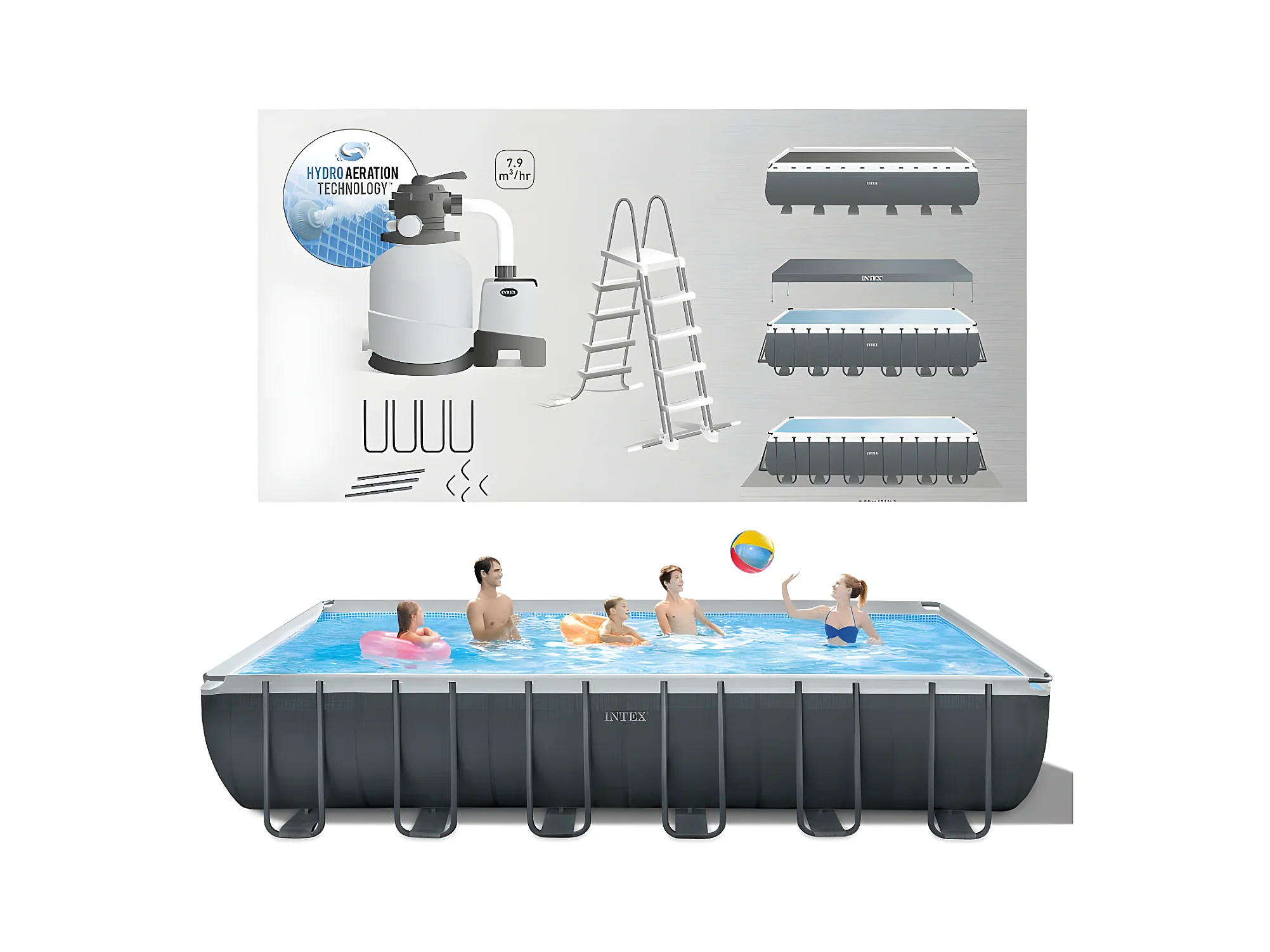 Piscina elevada 732x366x132 cm com bomba, escada e acessórios