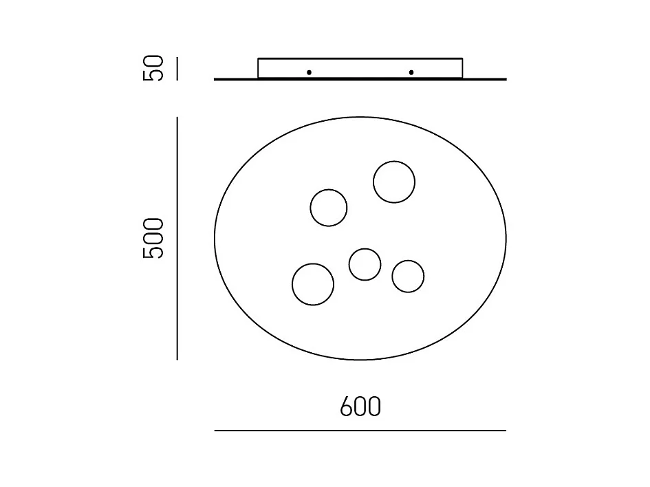 Plafon Luna em metal branco 60x50cm, 5 luzes GX53 max 5x8W, IP20, design redondo moderno, lâmpadas não incluídas