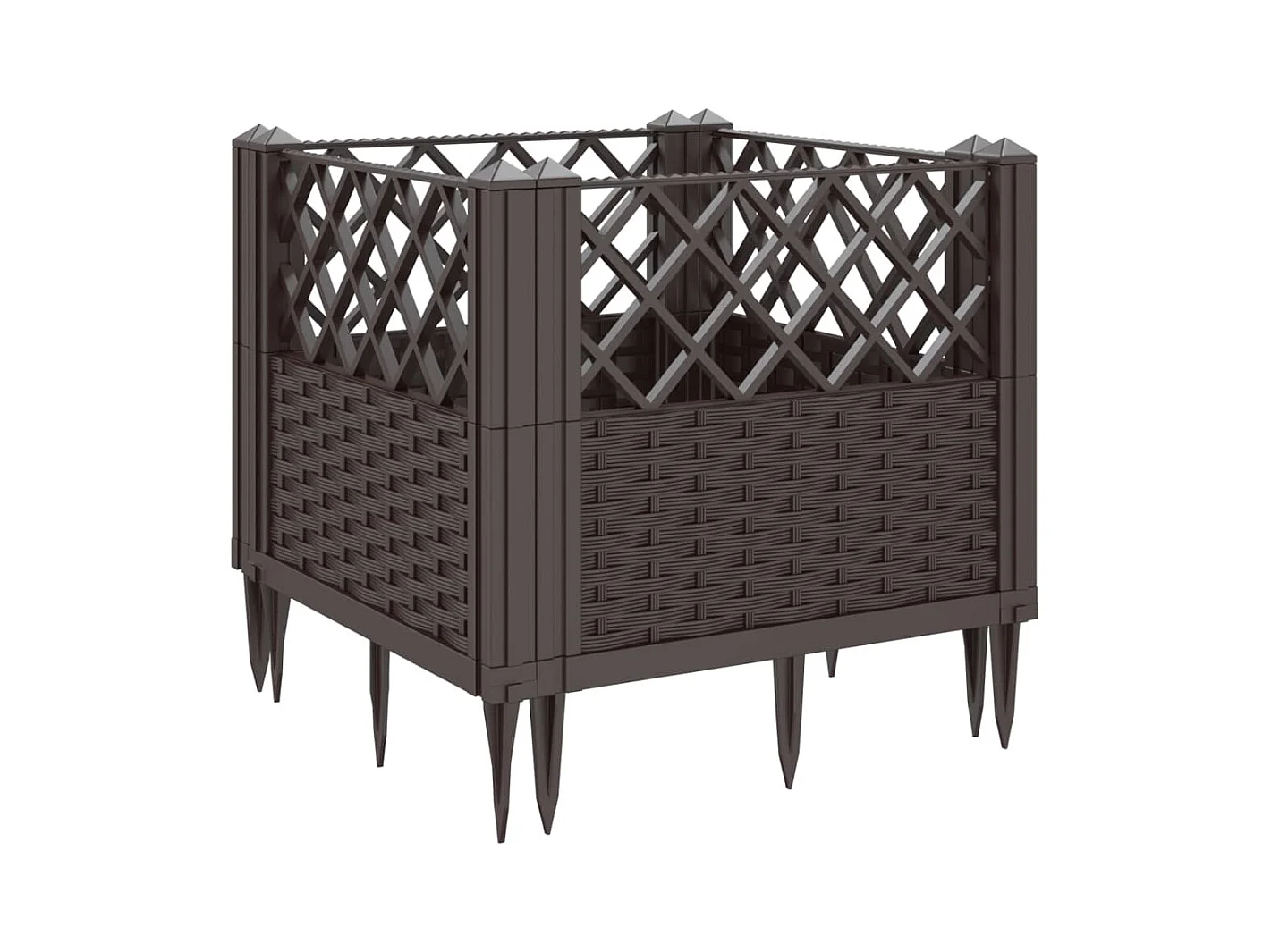 Plantador bandeja elevada plantas flores terraço jardim com estacas 43,5 x 43,5 x 43,5 cm PP marrom 02_0038203