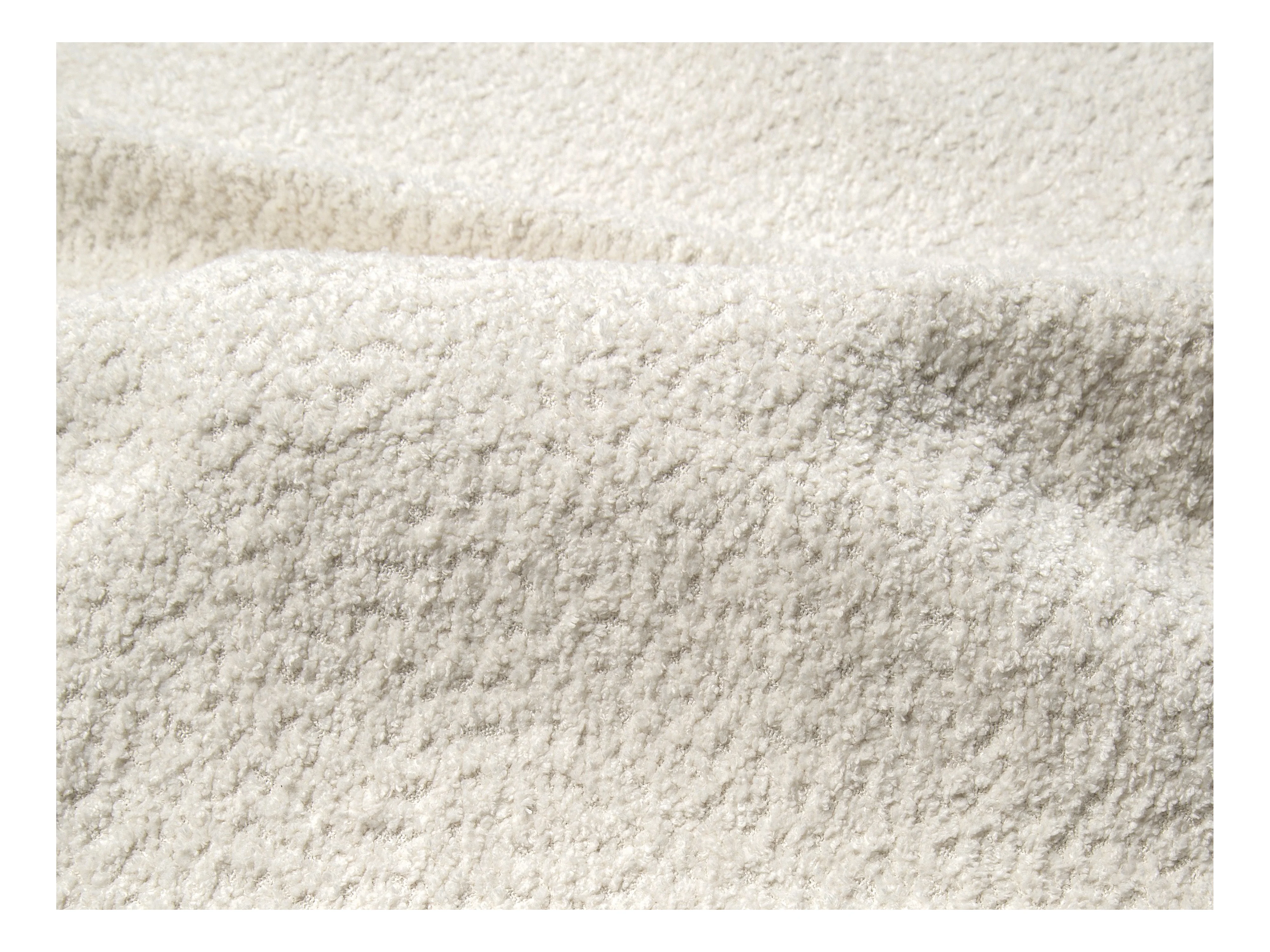 • Um toque reconfortante: O tecido bouclé evoca calor e aconchego num estilo contemporâneo.
