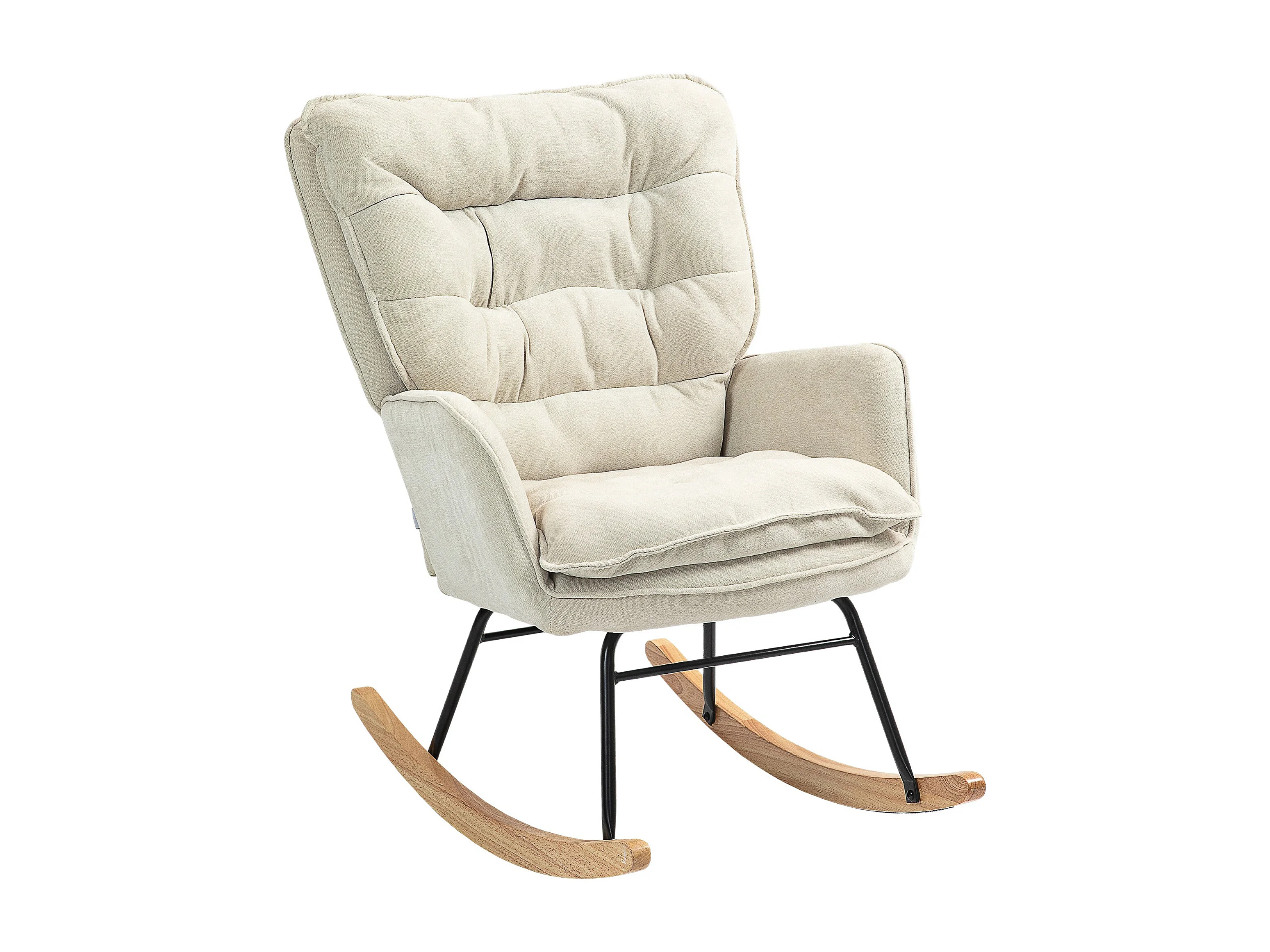 Poltrona Baloiço Estofada em Chenilla com Pés de Madeira de Faia - Modelo Helsinki para Dormitório e Sala de Estar