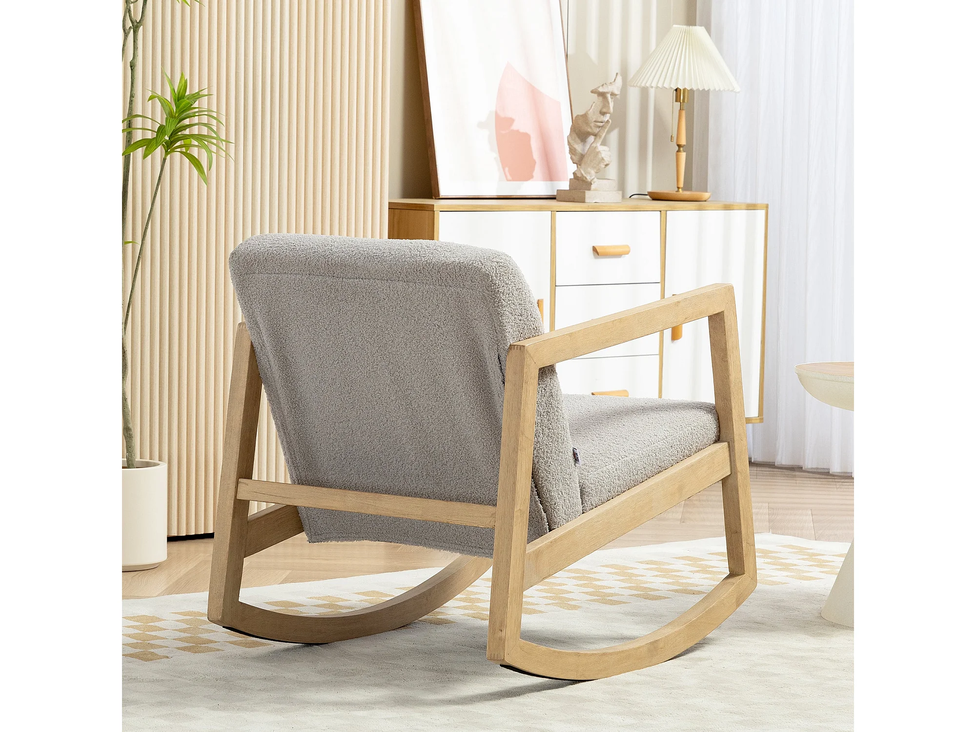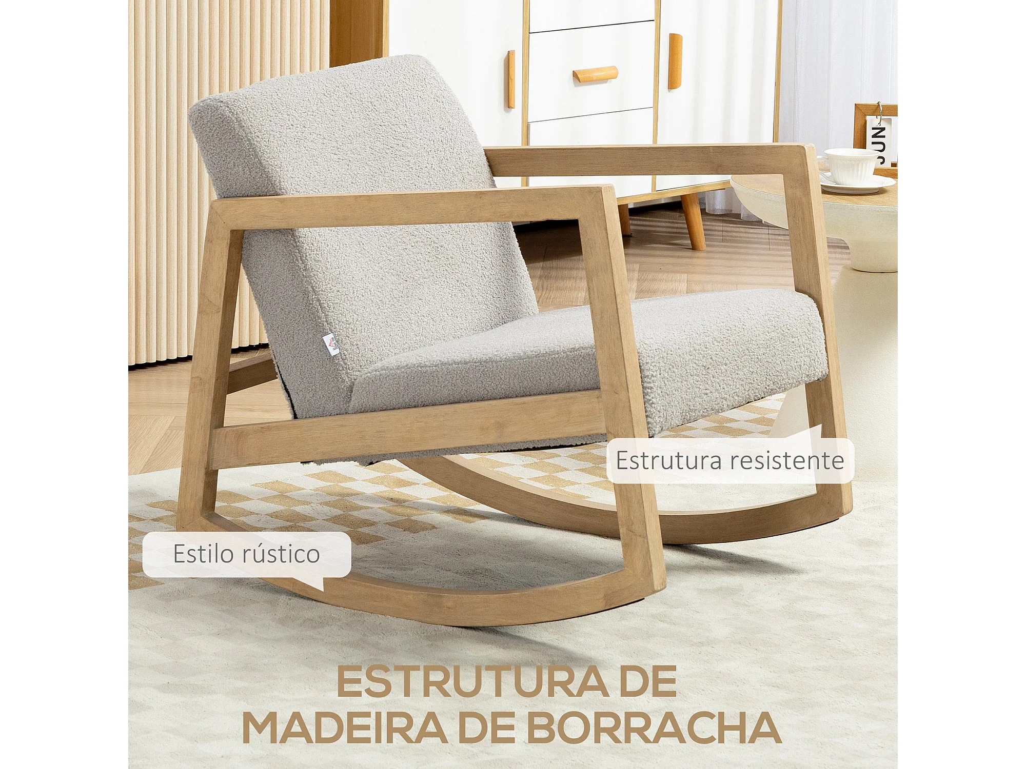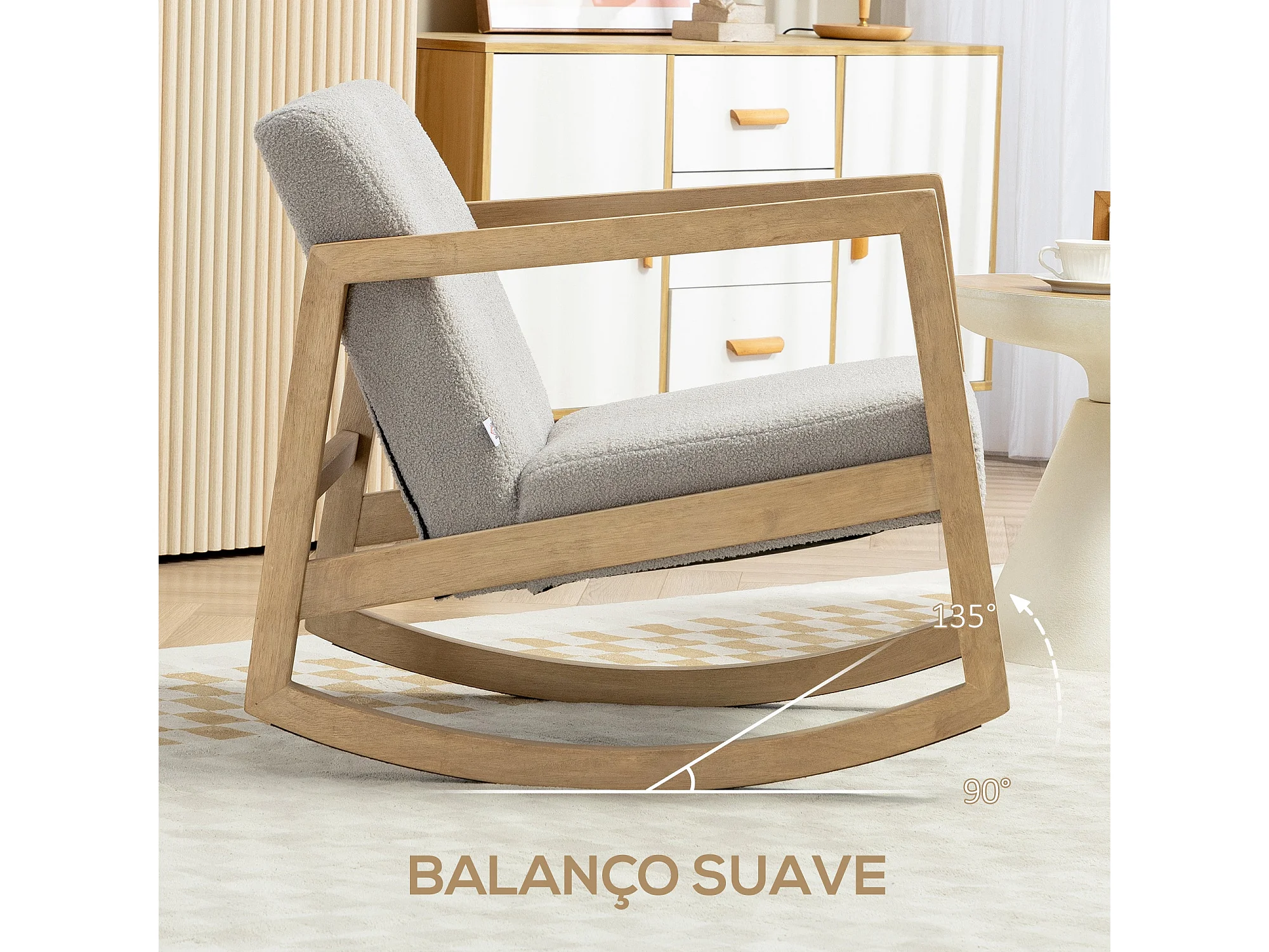 Poltrona Baloiço HOMCOM Aconchegante em Tecido Polar com Estrutura de Madeira - Cinza