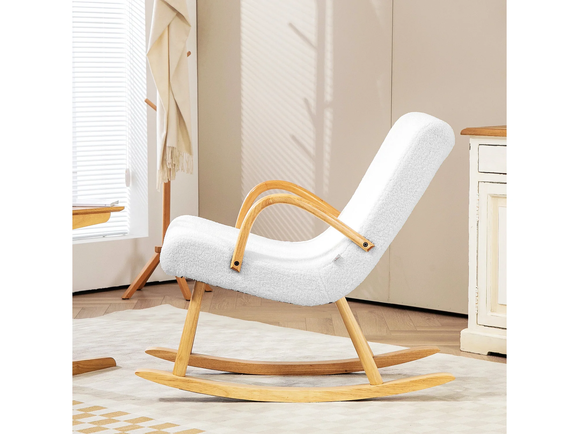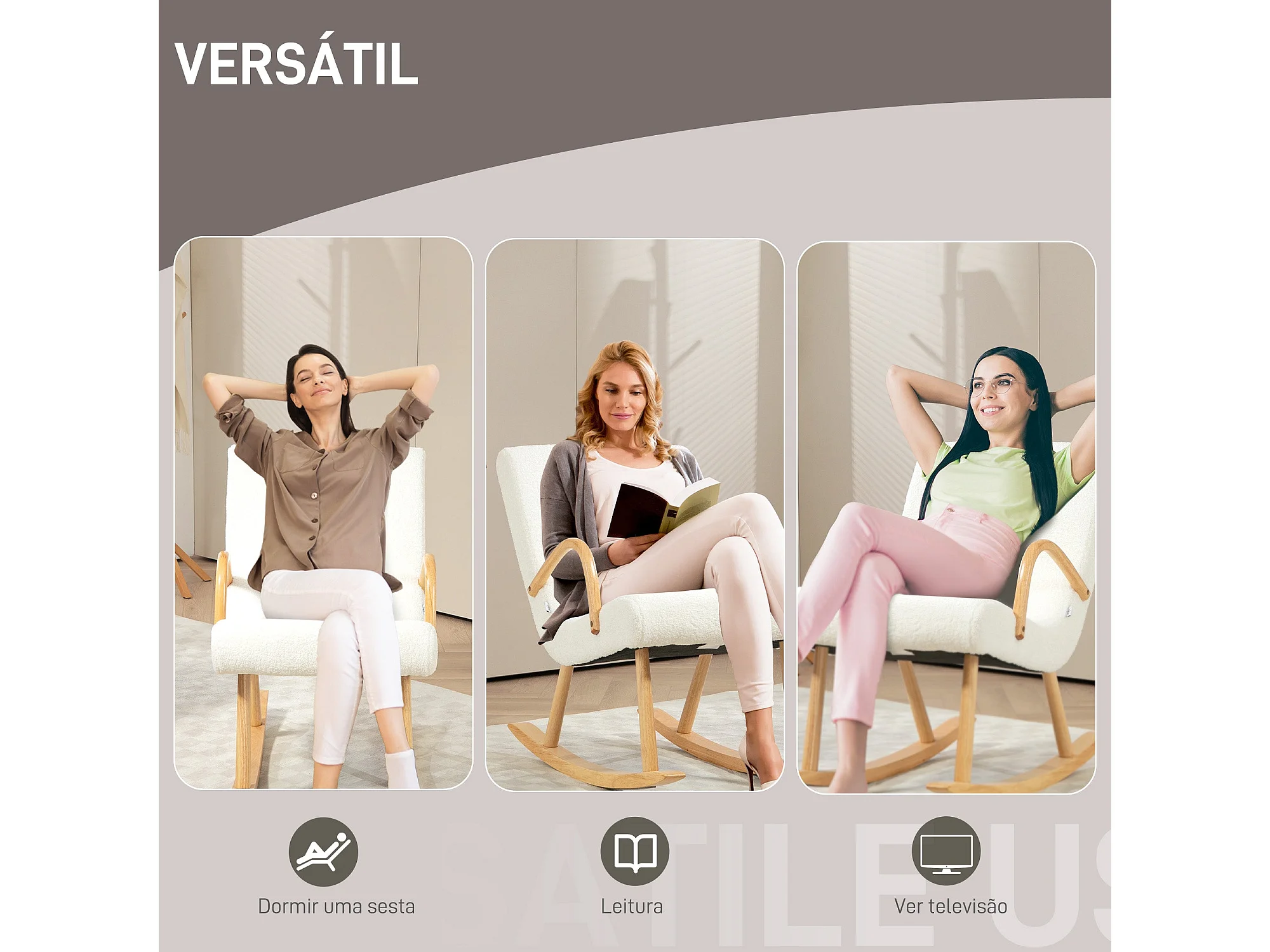 Cadeira de baloiço Teddy Plush - Cadeira de baloiço com apoio para os pés, pernas em madeira maciça - confortável 65x96,5x85cm - Branco