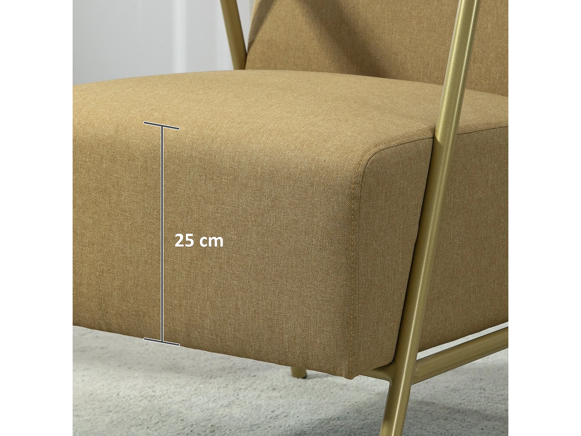 Poltrona Bella com Apoio de Braços em Aço Dourado - Estilo Moderno e Confortável - 62x81x92 cm - Cor Castanho