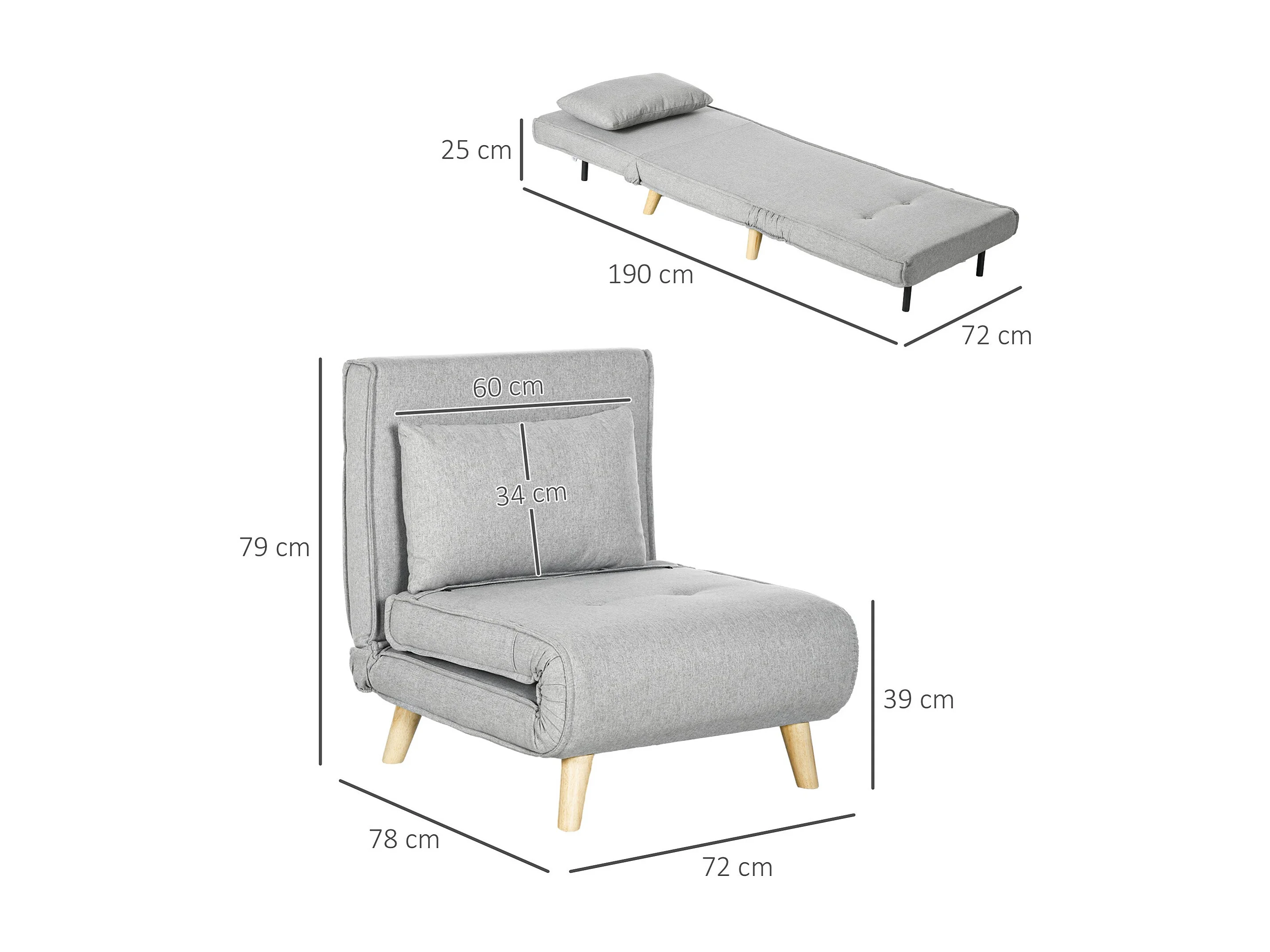 Poltrona Cama Lund: Sofá-Cama Dobrável Elegante em Cinzento Claro