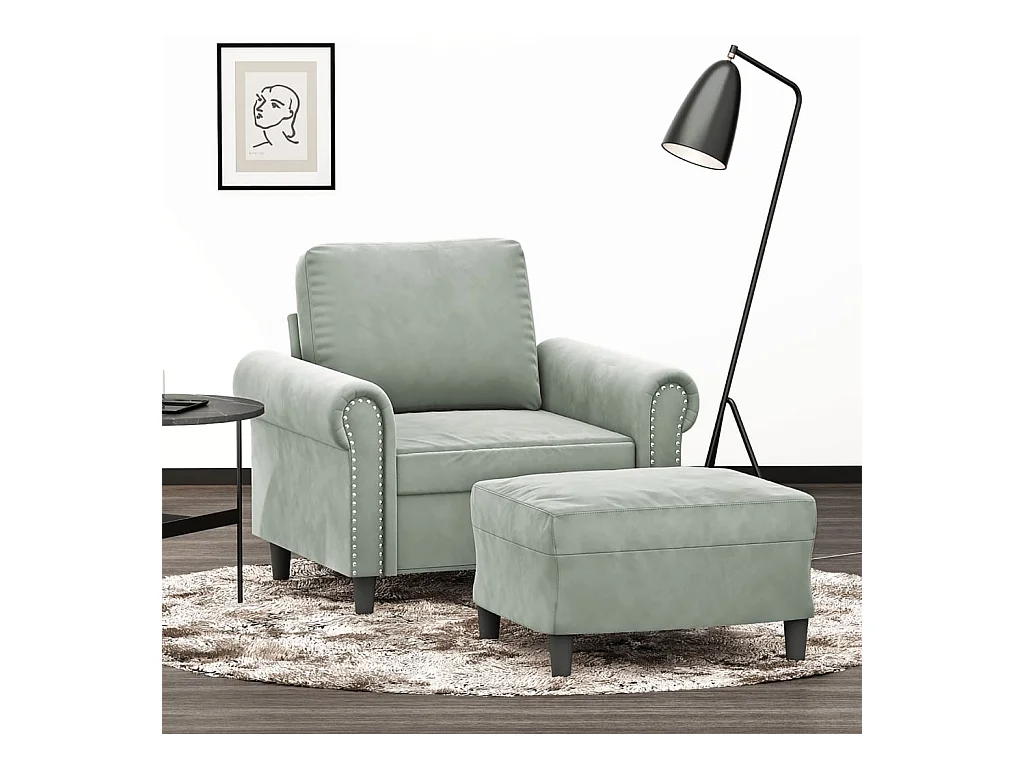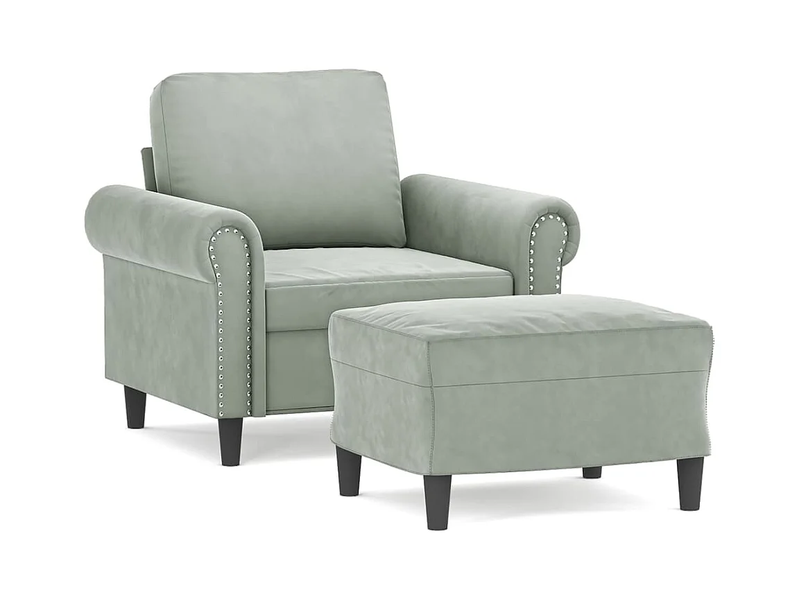 Poltrona com apoio de pés 60 cm veludo cinzento-claro