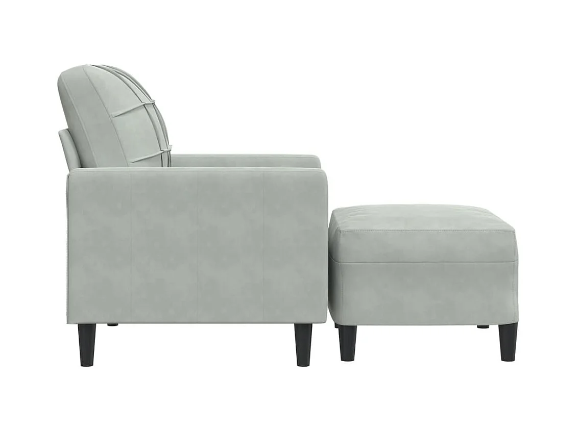 Poltrona com apoio de pés 60 cm veludo cinzento-claro