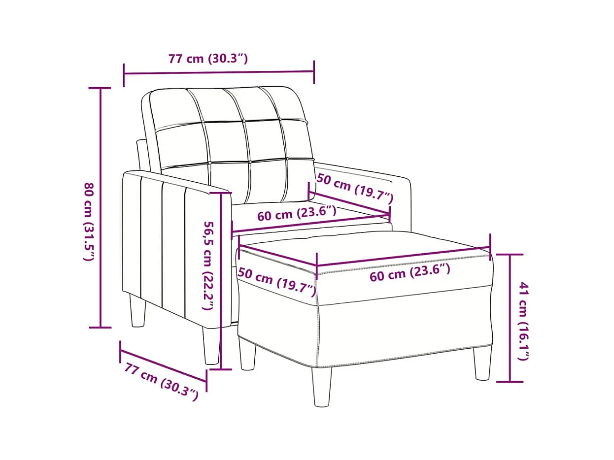 Poltrona com apoio de pés couro artificial 60 cm cinzento