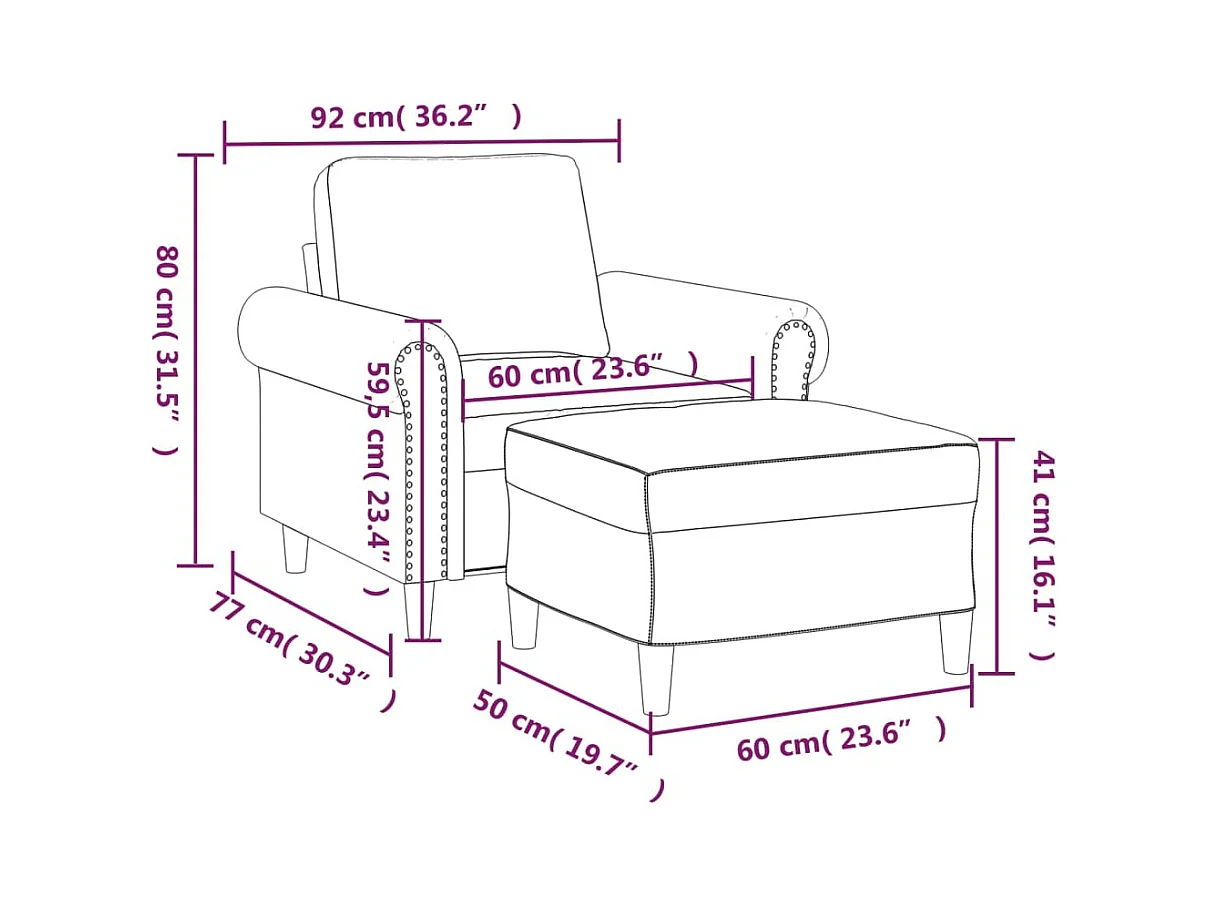 Poltrona com apoio de pés 60 cm veludo preto