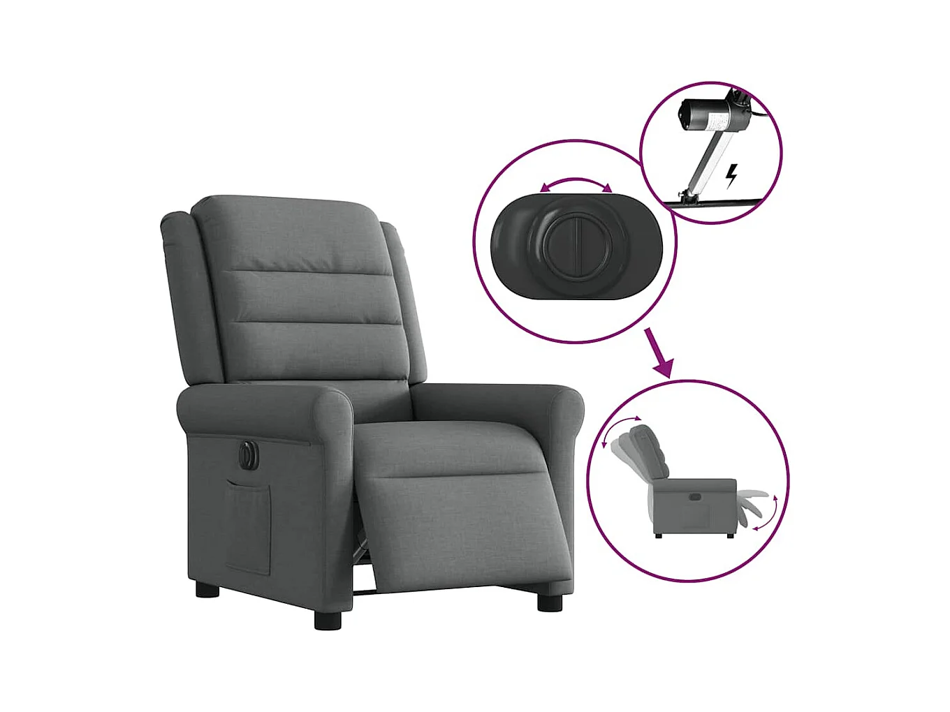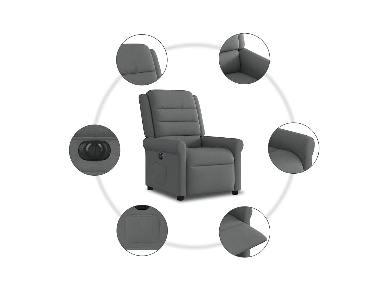 Poltrona Confortável | Poltrona reclinável elétrica tecido cinzento-escuro SHL495179
