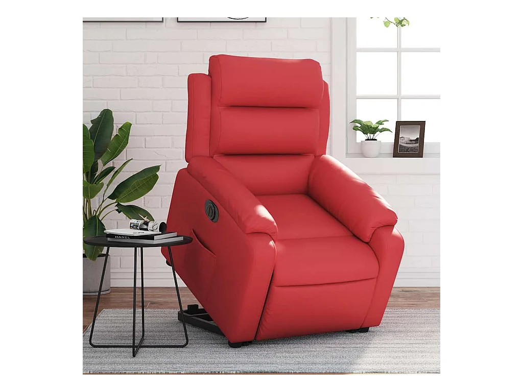 Poltrona Confortável | Poltrona reclinável elevatória couro artificial vermelho SHL133703