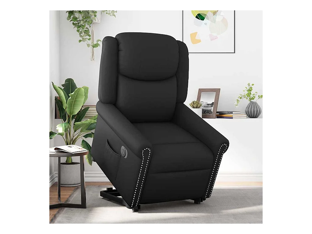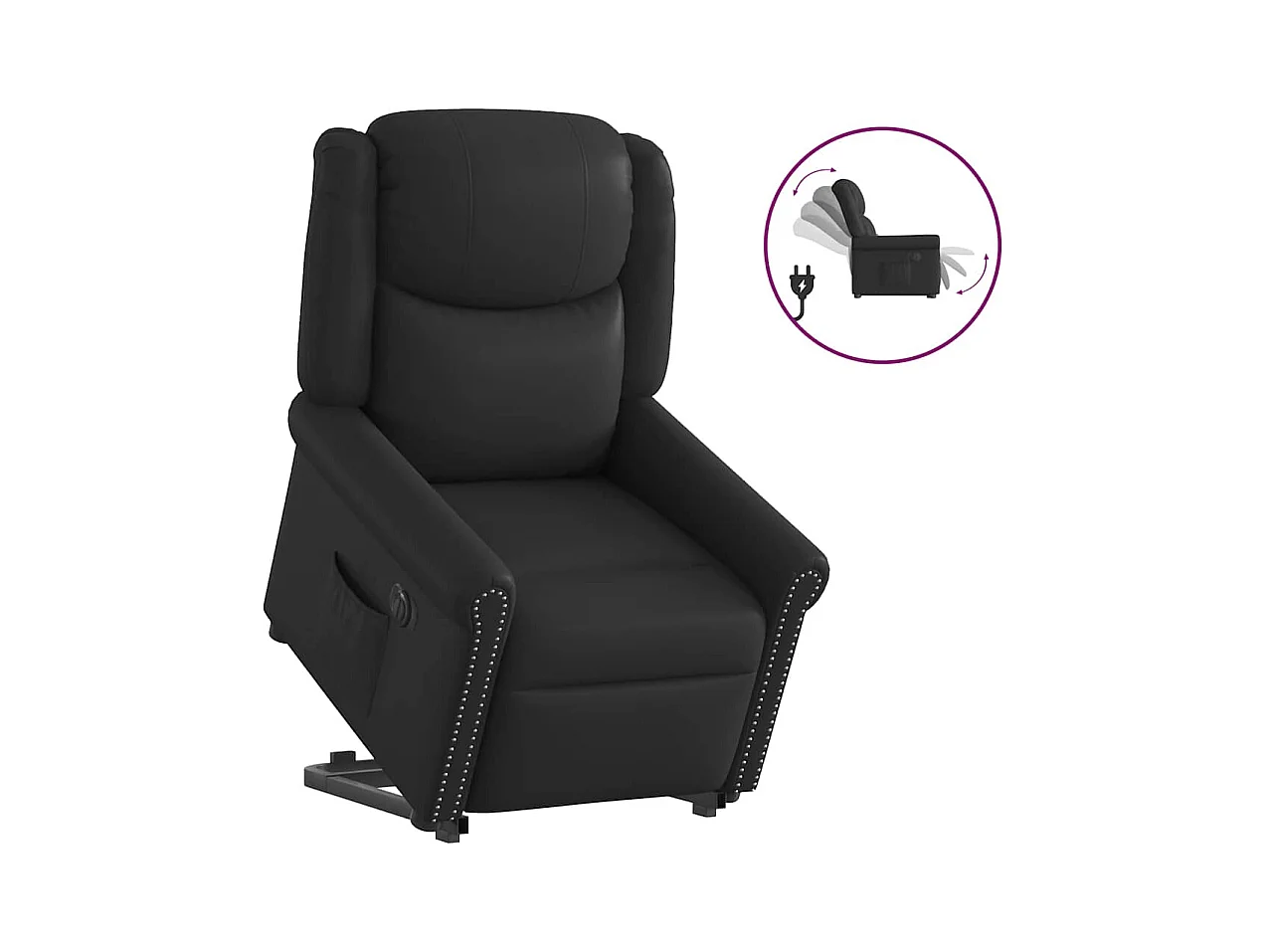 Poltrona Confortável | Poltrona reclinável elevatória elétrica couro artificial preto SHL596444