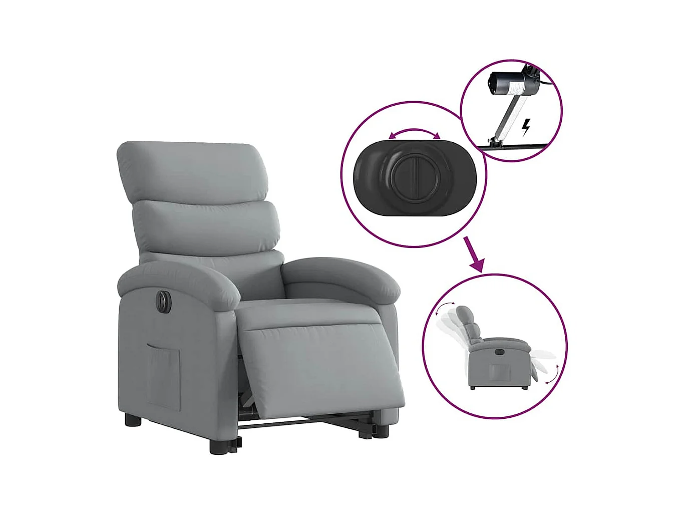 Poltrona Confortável | Poltrona reclinável elevatória elétrica couro artificial cinza SHL238331