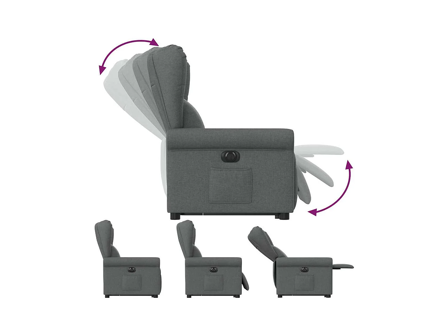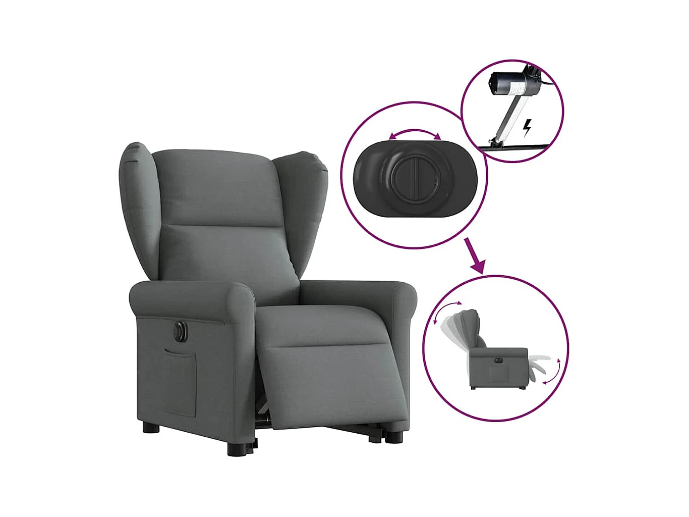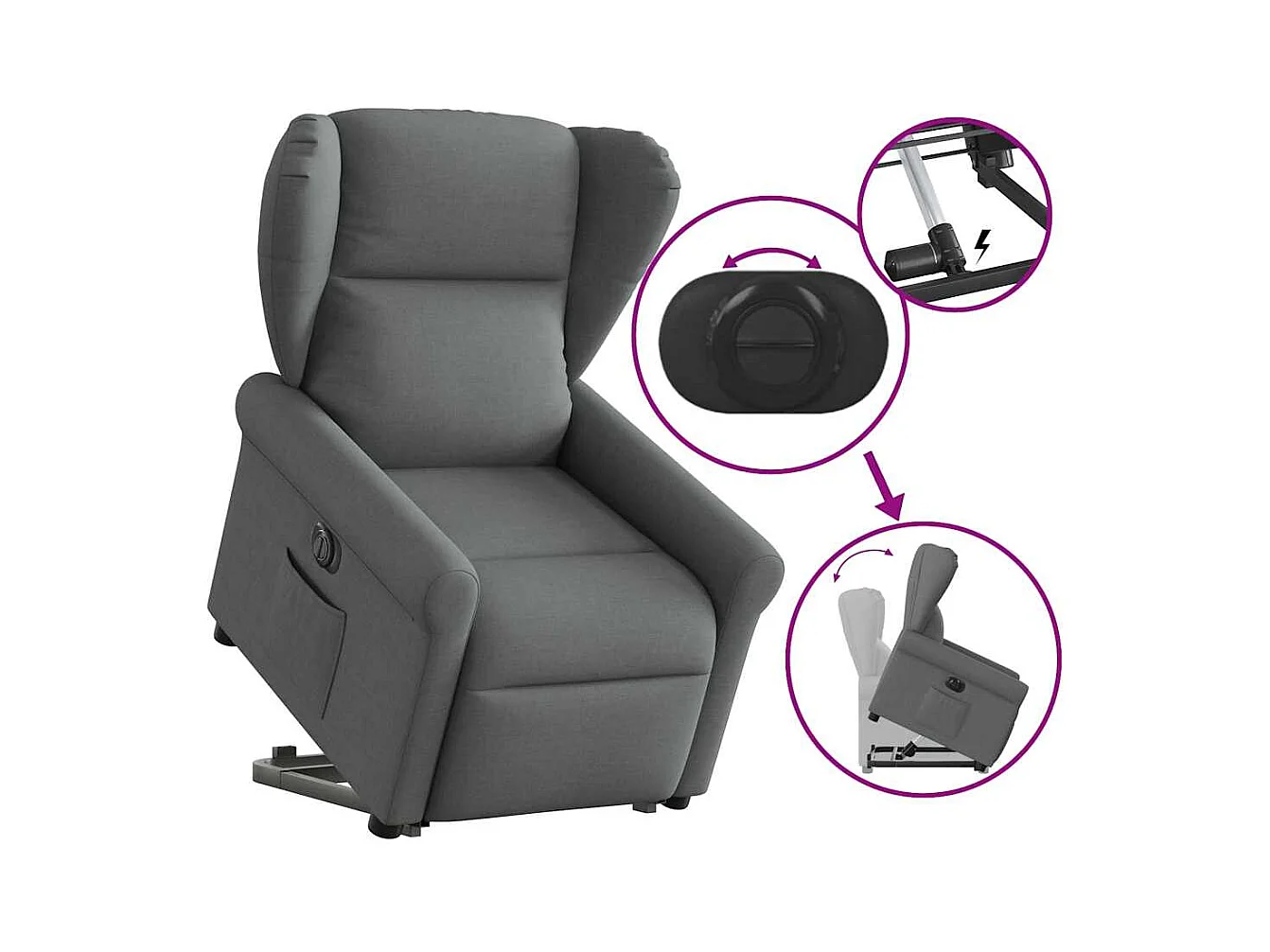 Poltrona Confortável | Poltrona reclinável elevatória elétrica tecido cinzento-escuro SHL838569