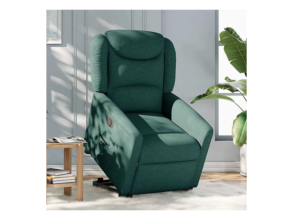 Poltrona Confortável | Poltrona reclinável elevatória elétrica tecido verde-escuro SHL704469