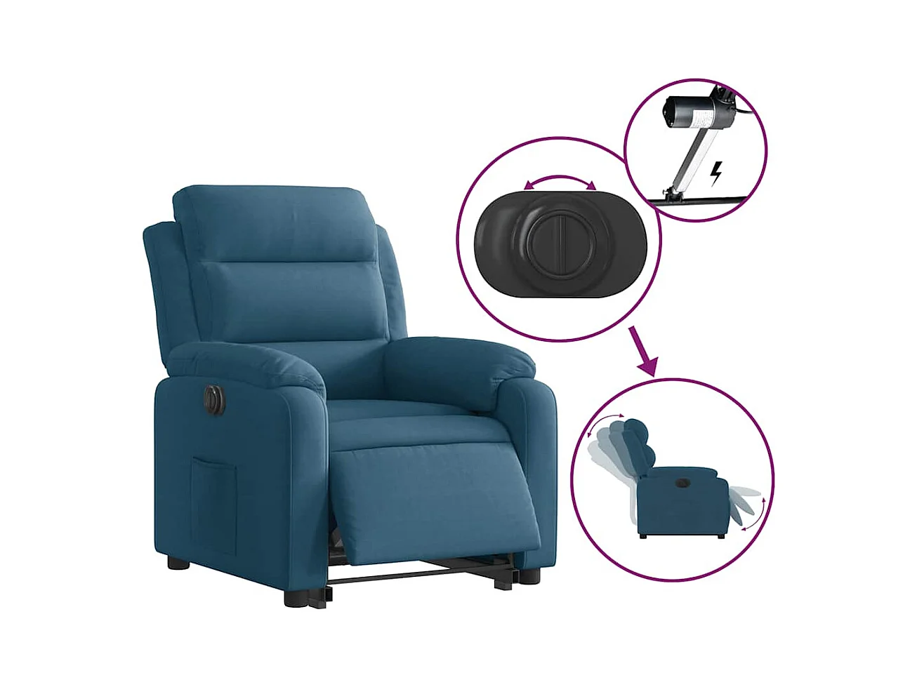 Poltrona Confortável | Poltrona reclinável elevatória elétrica veludo azul SHL121630