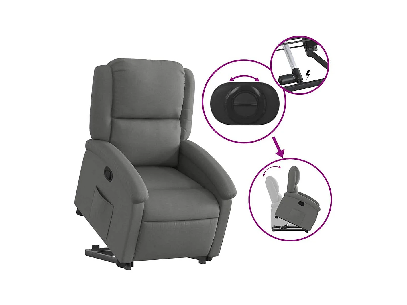 Poltrona Confortável | Poltrona reclinável elevatória tecido cinzento-escuro SHL360274