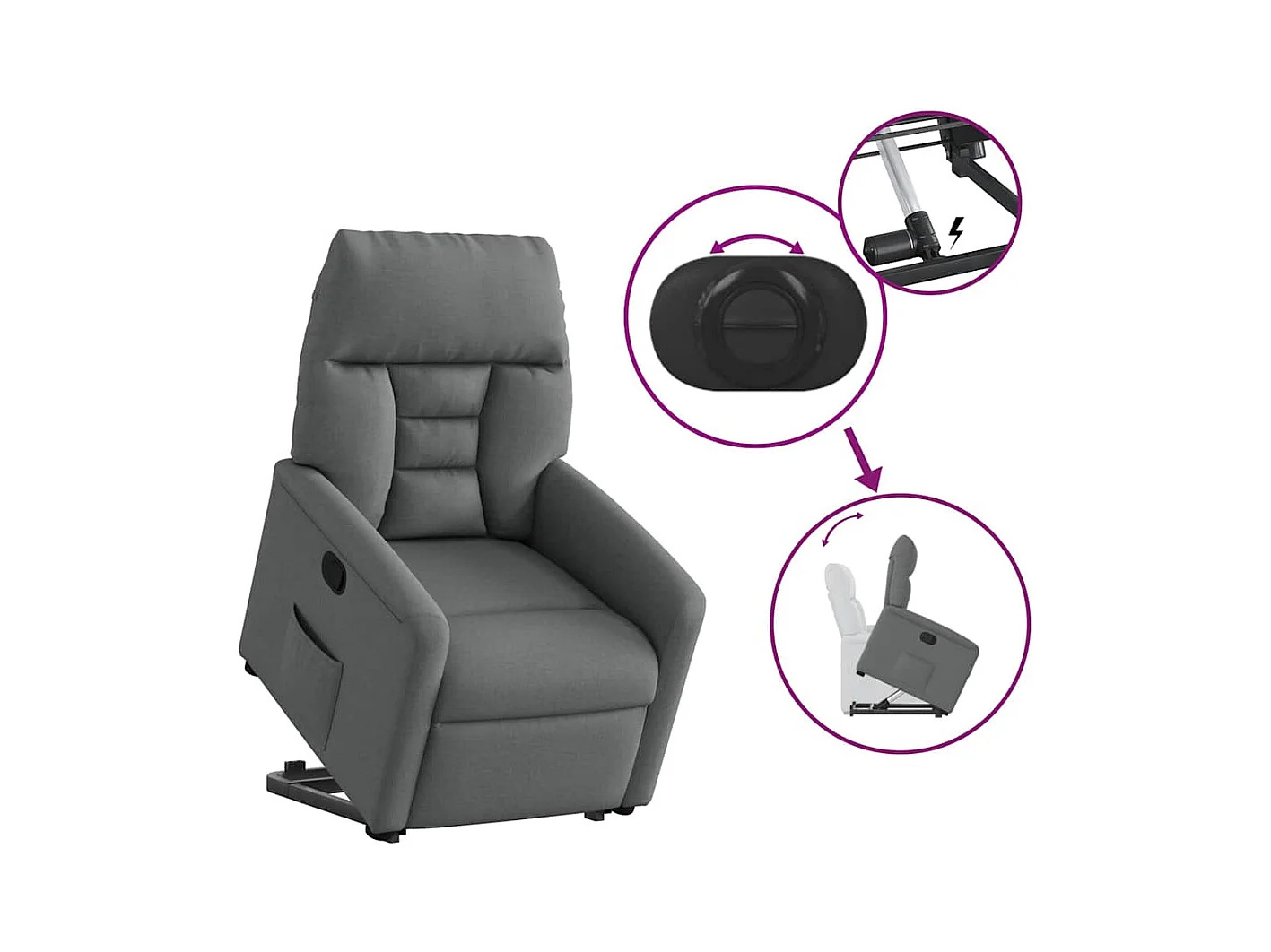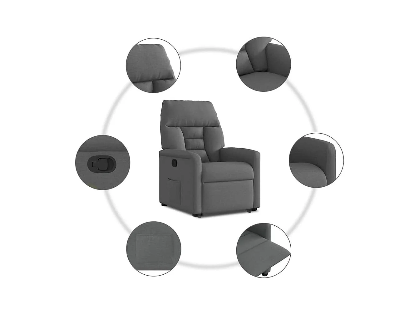 Poltrona Confortável | Poltrona reclinável elevatória tecido cinzento-escuro SHL997200