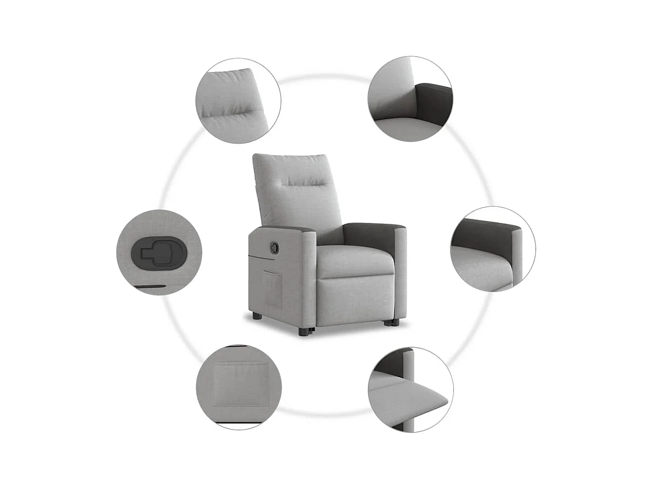 Poltrona Confortável | Poltrona reclinável elétrica tecido cinzento-claro SHL892363