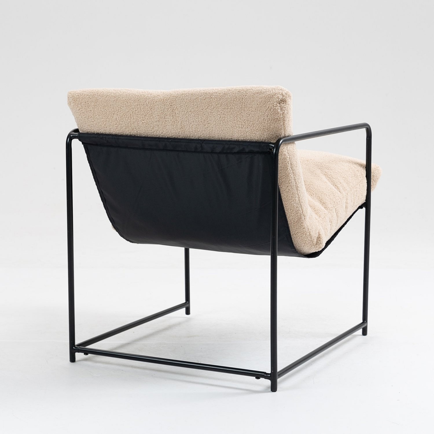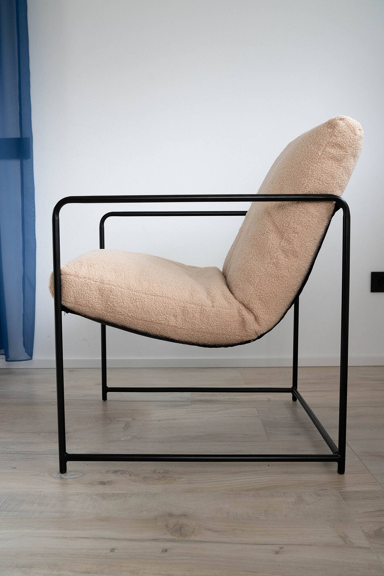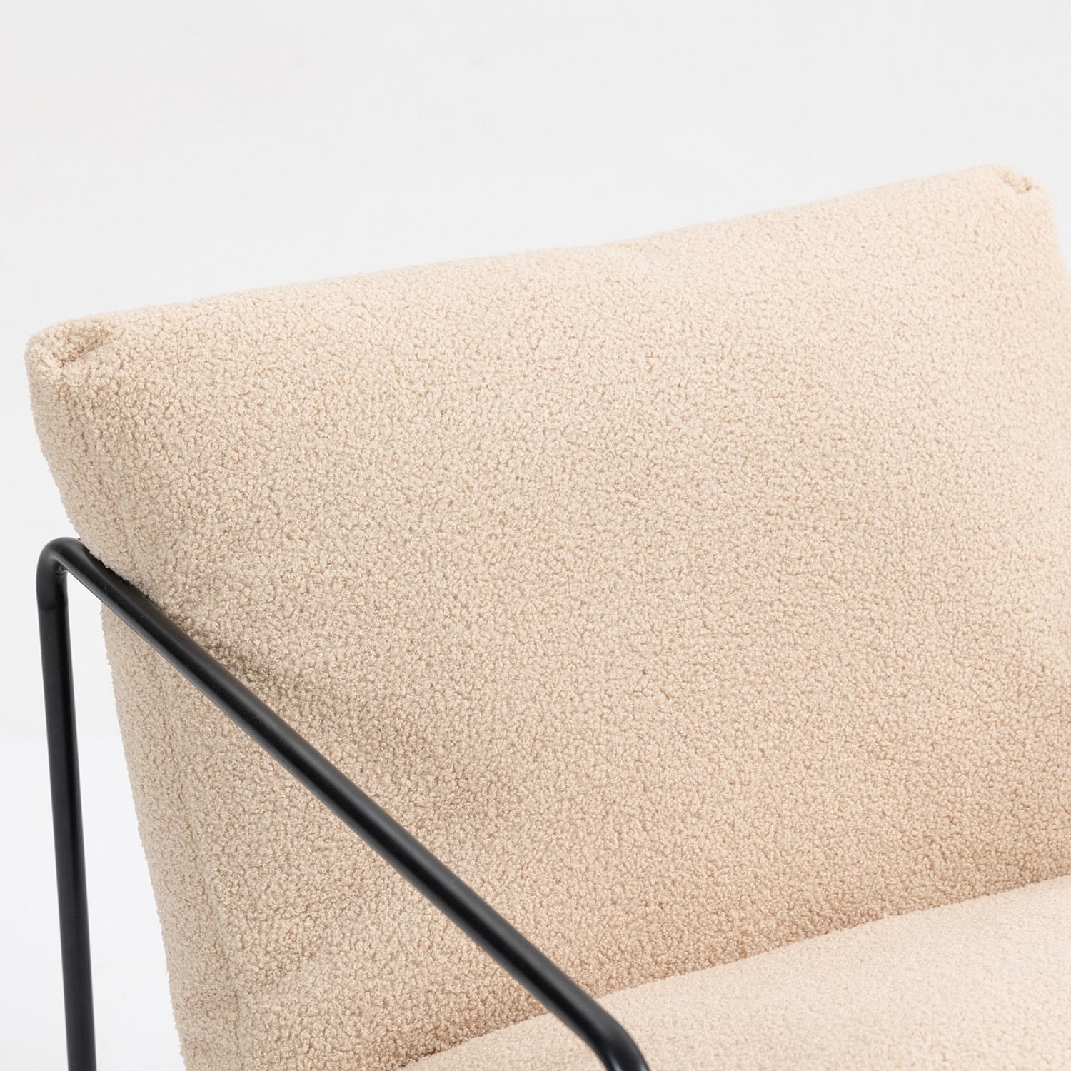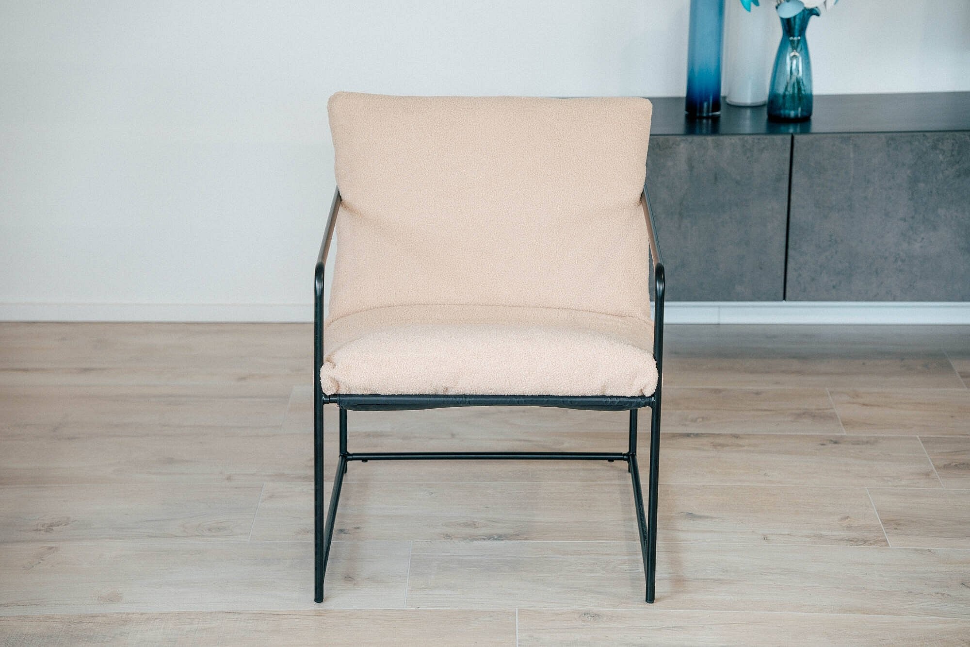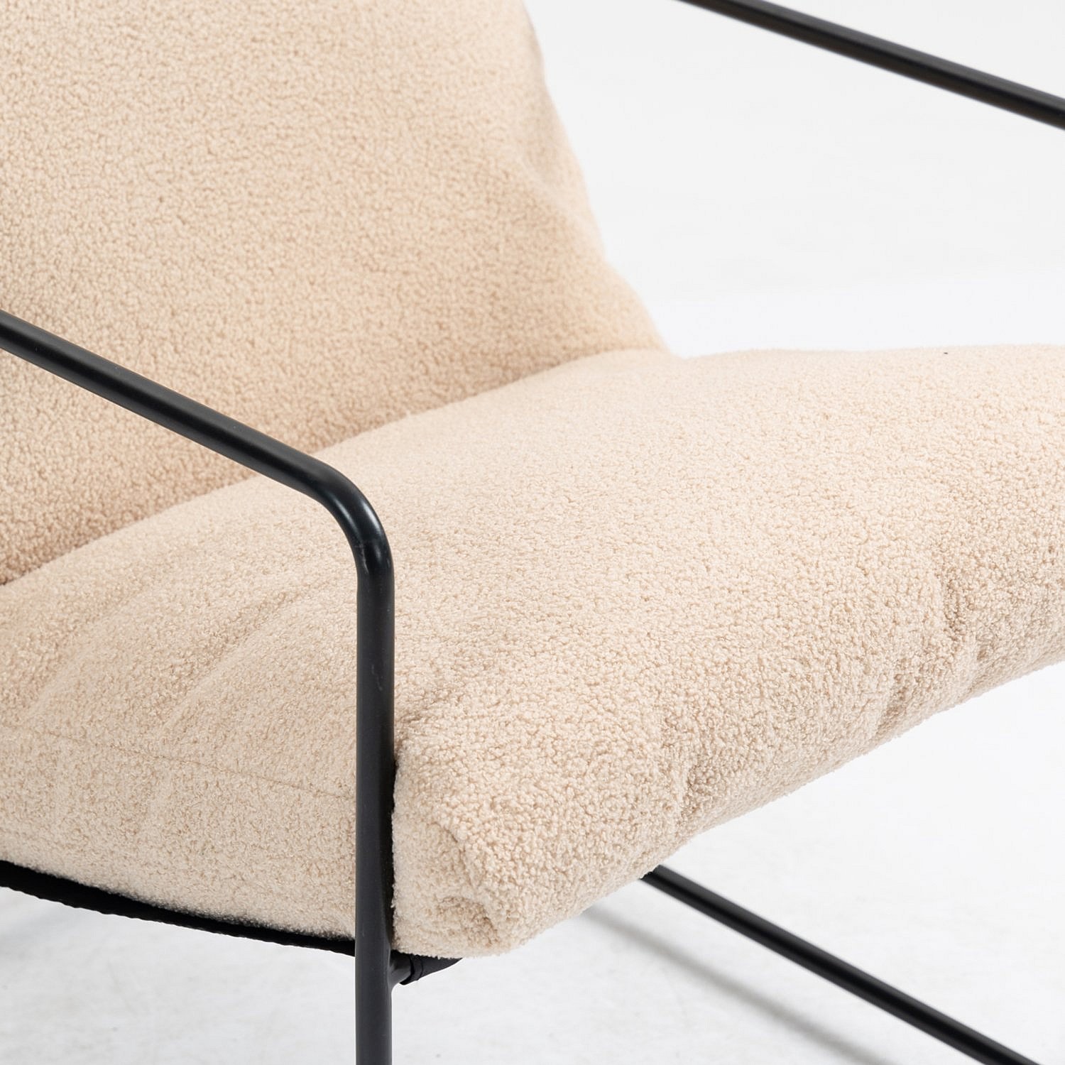 Poltrona Dabdelat, Poltrona estofada em tecido bouclé, Cadeira estofada, Assento com braços de metal, 61x67h75 cm, Bege