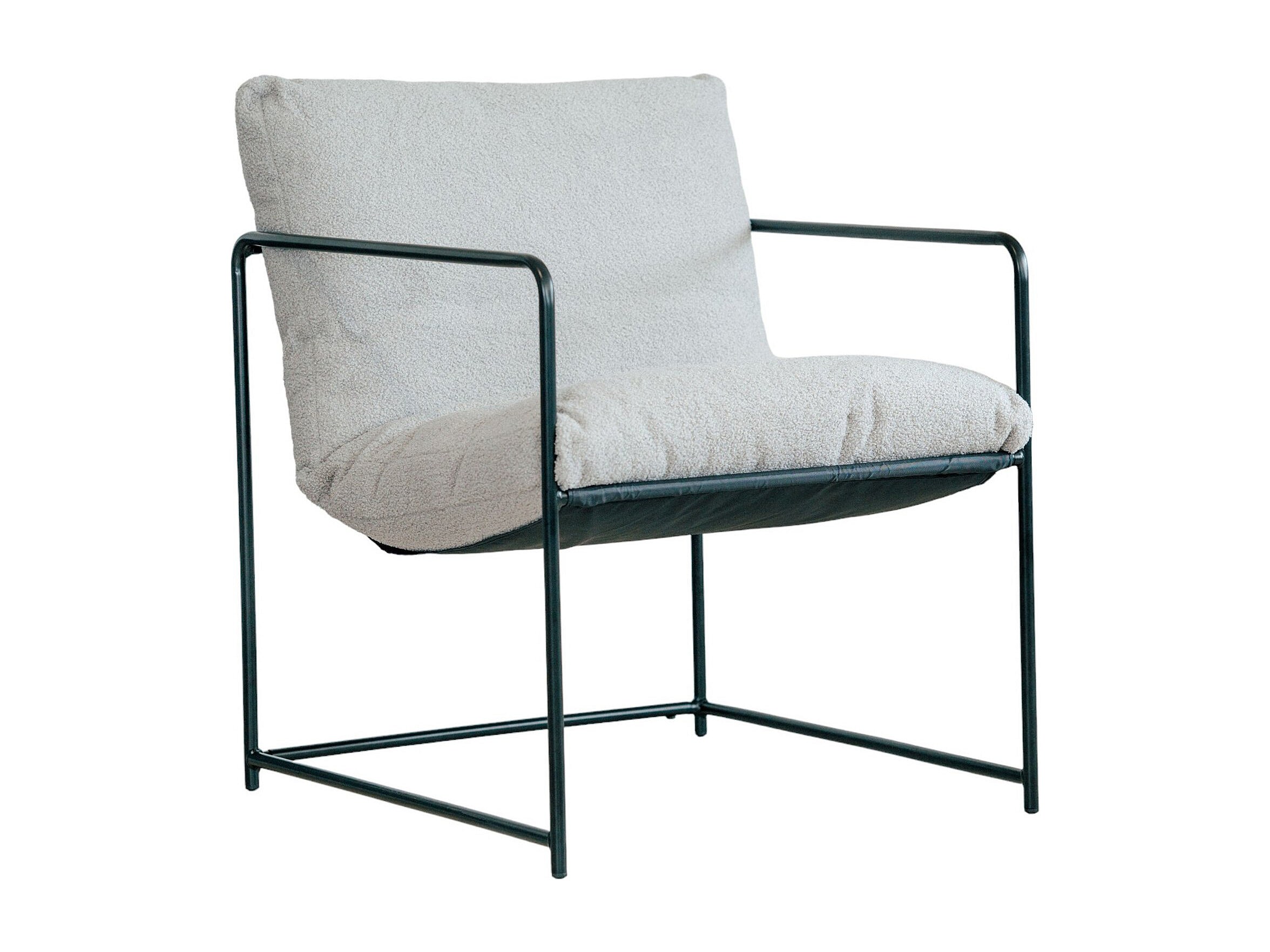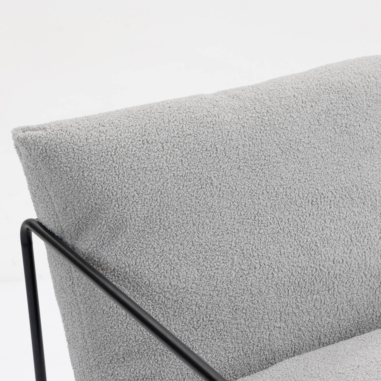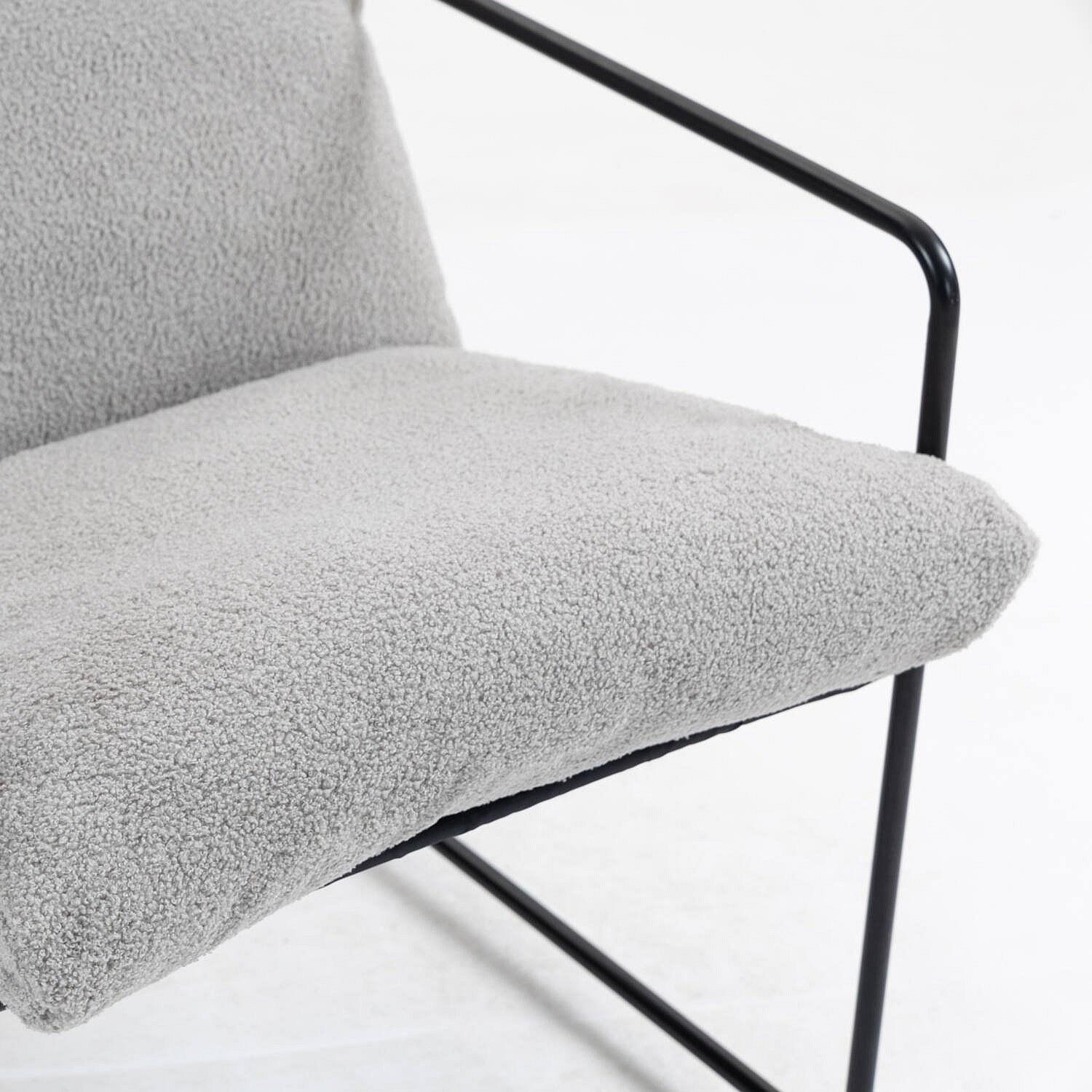 Poltrona Dabdelat, Poltrona estofada em tecido bouclé, CadeiraAcolchoado, Assento com braços de metal, 61x67h75 cm, Cinza