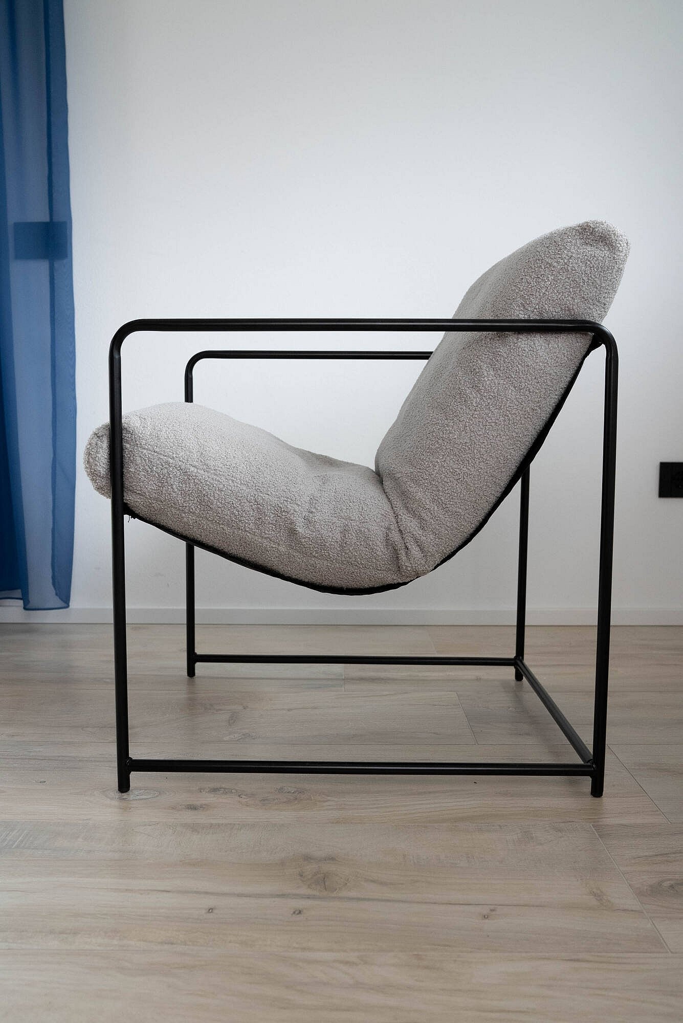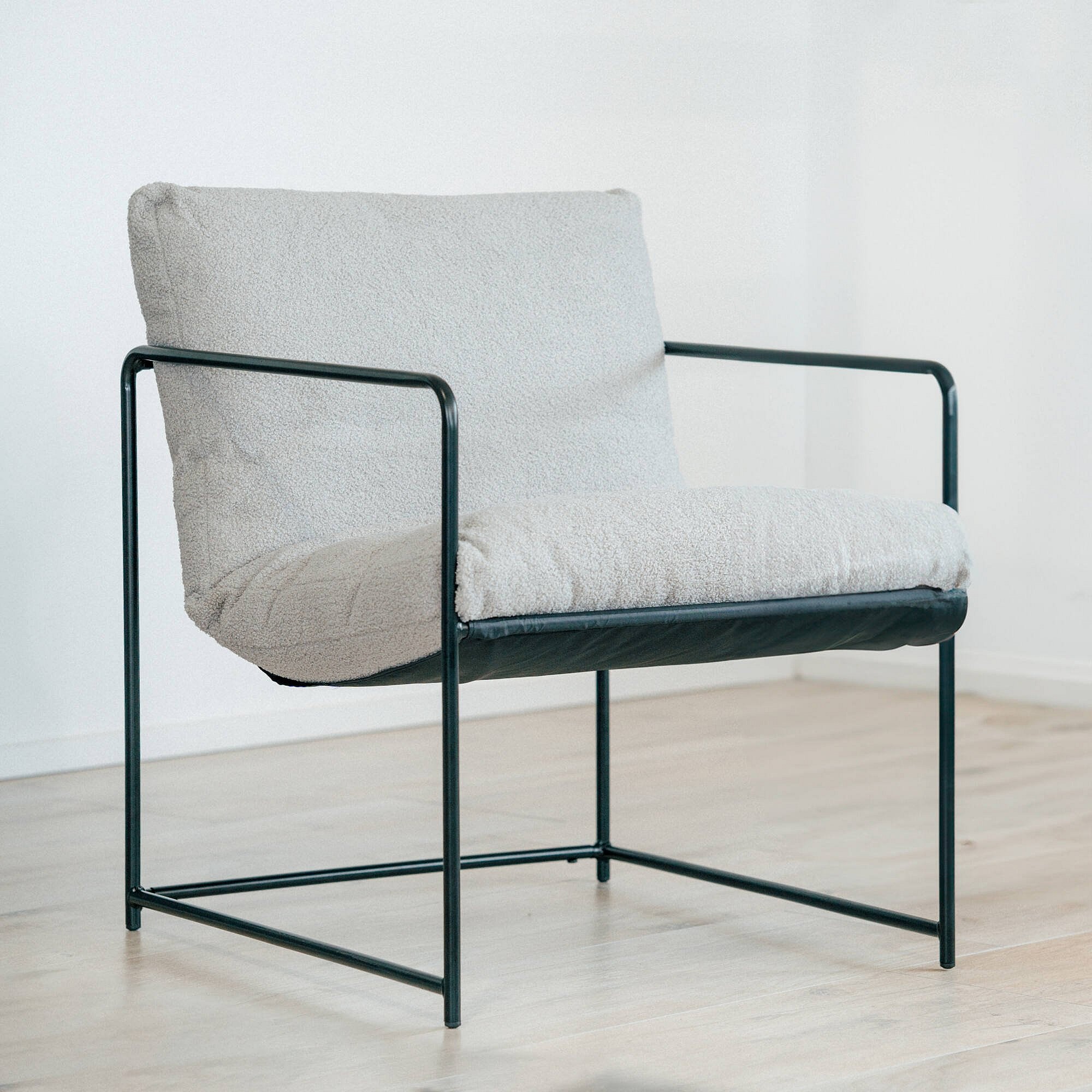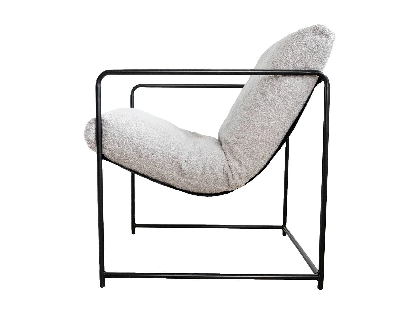 Poltrona Dabdelat, Poltrona estofada em tecido bouclé, CadeiraAcolchoado, Assento com braços de metal, 61x67h75 cm, Cinza