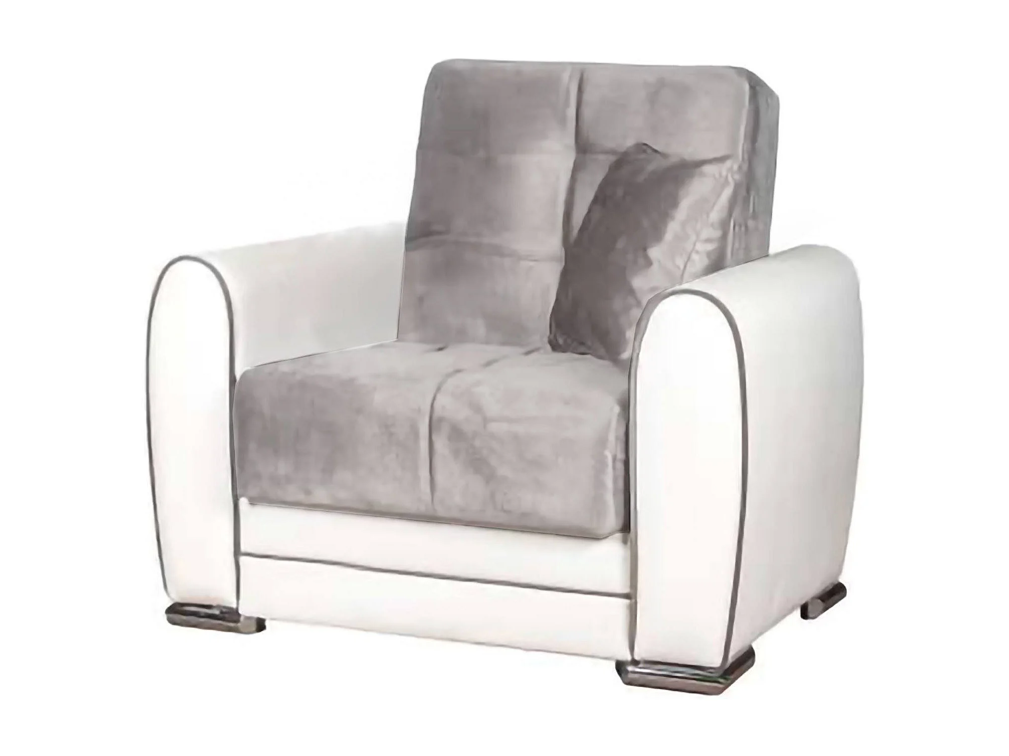 Poltrona Dcont, Poltrona de armazenamento para sala, conversível em cama, Poltrona relaxante em tecido acolchoado, 97x84h91 cm, Branco e Cinza Claro