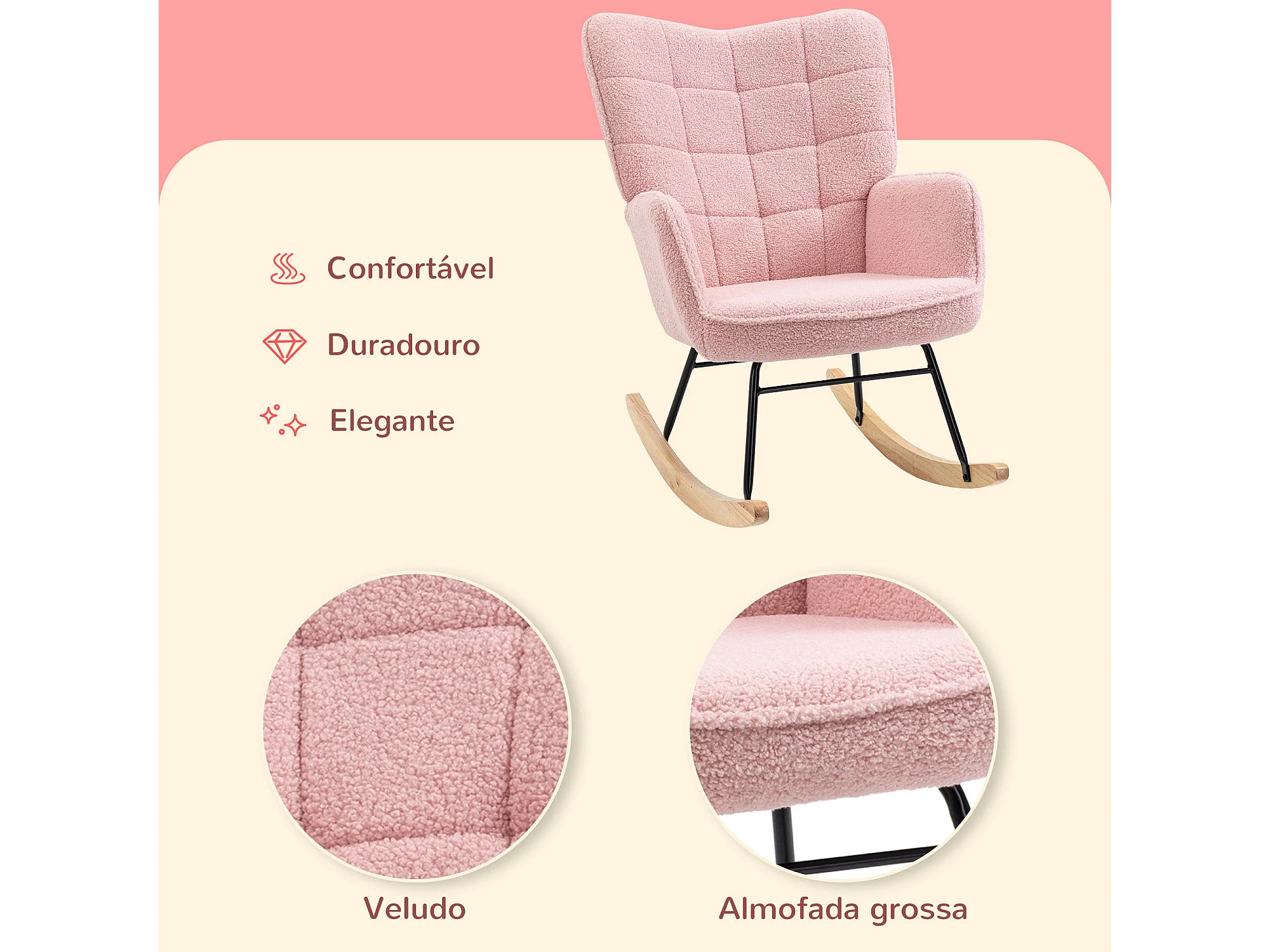 Poltrona de Baloiço HOMCOM Rosa com Estofamento Acolchoado e Estrutura Resistente