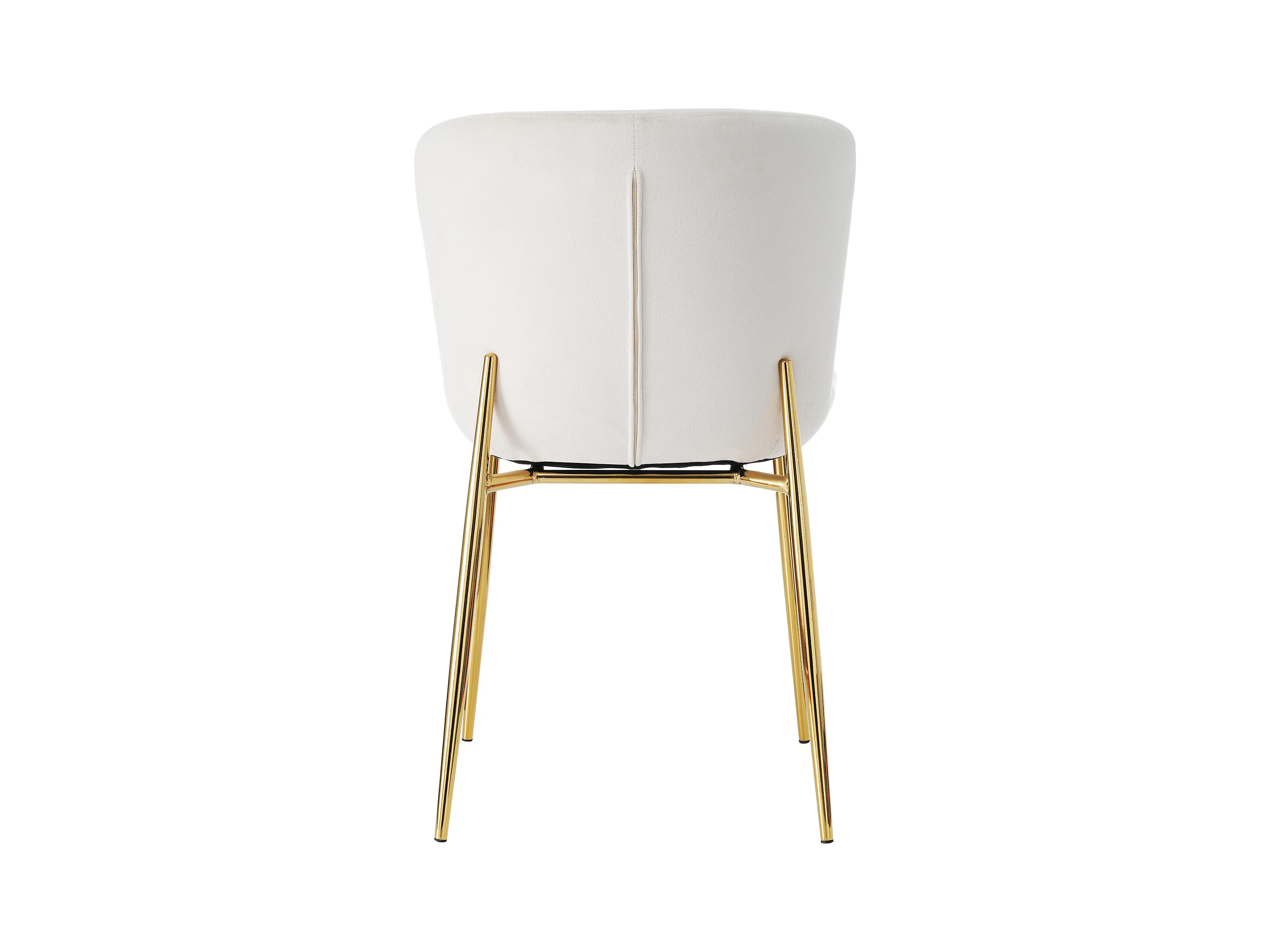 Cadeira de veludo bege com encosto estofado e pernas de metal prateado para sala de estar ou sala de jantar, conjunto de 2