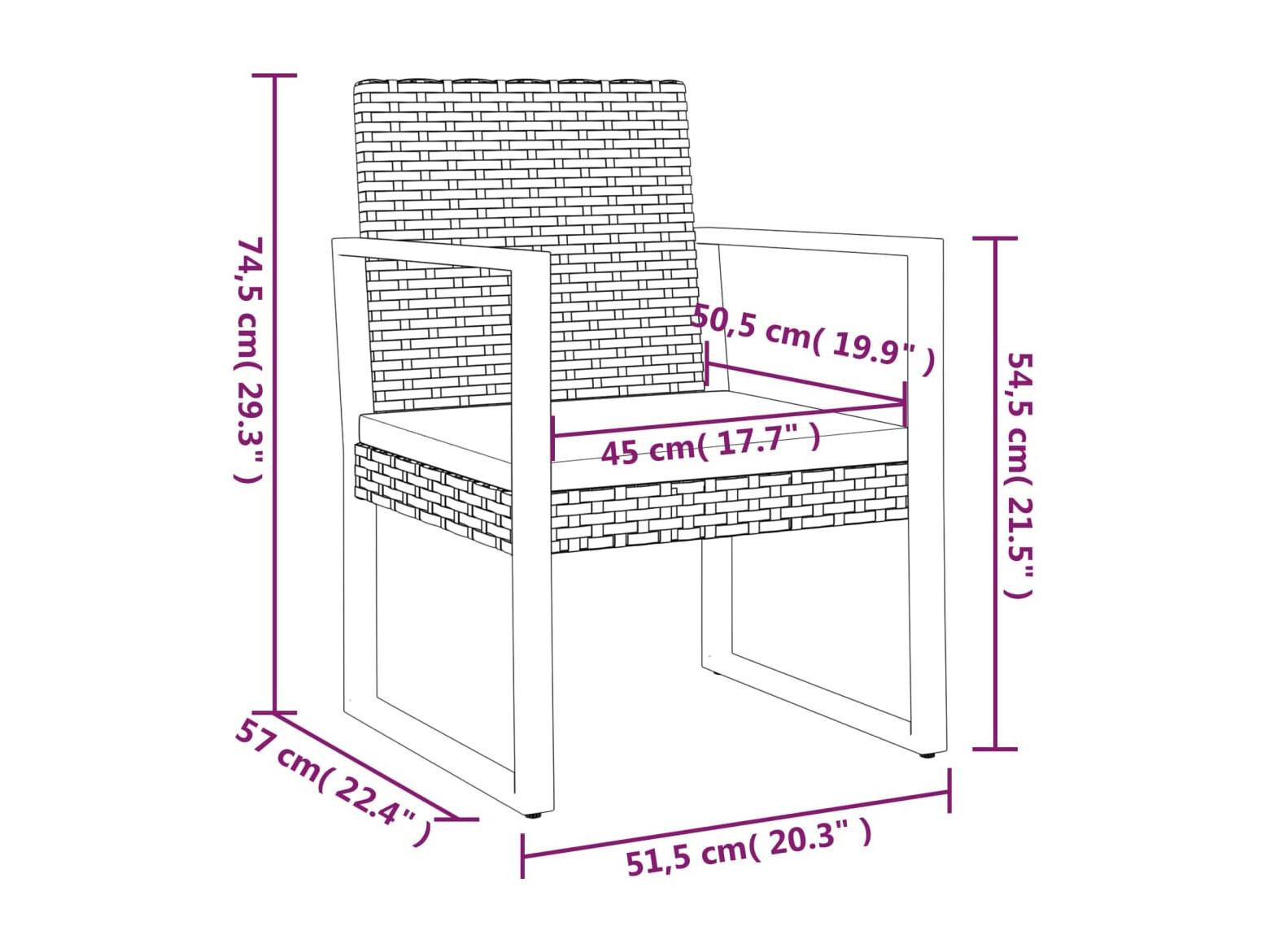 Cadeira de jardim com almofadões vime PE preto