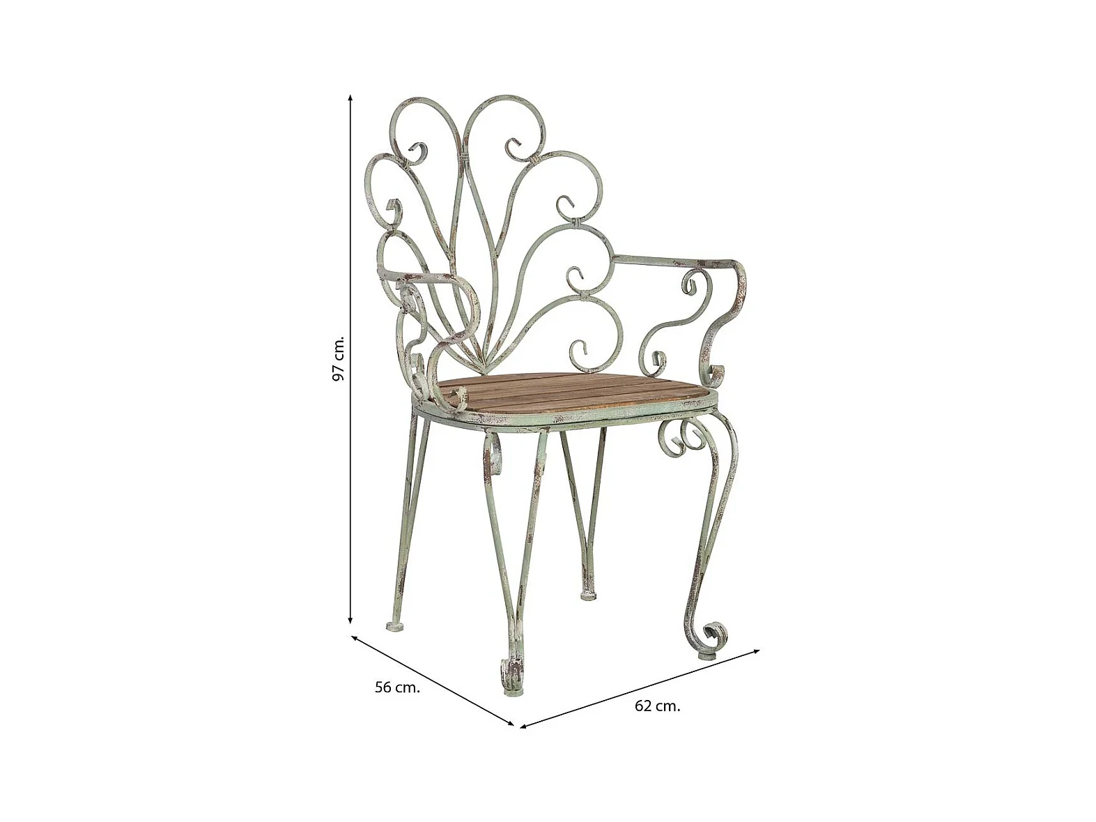 Poltrona de madeira e metal acabamento envelhecido 62x56x97h cm
