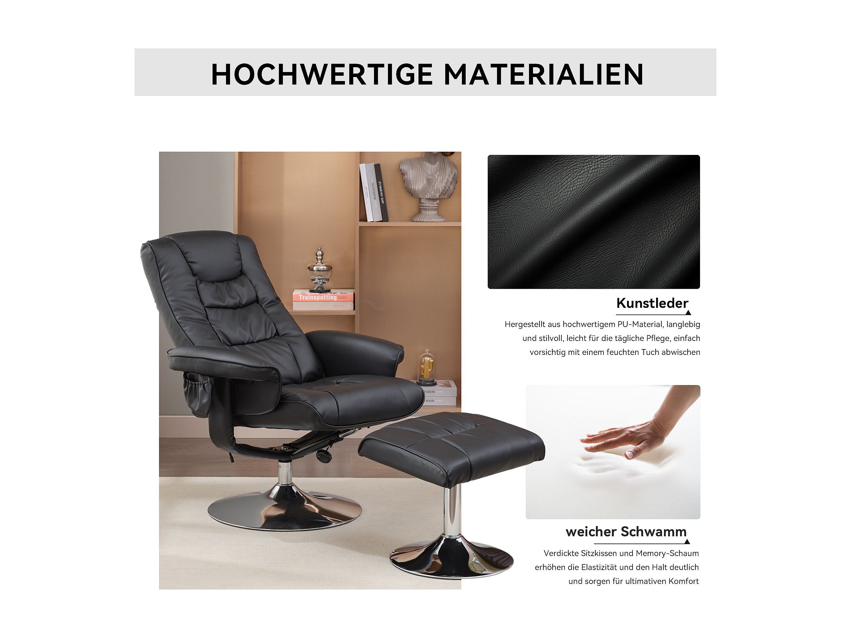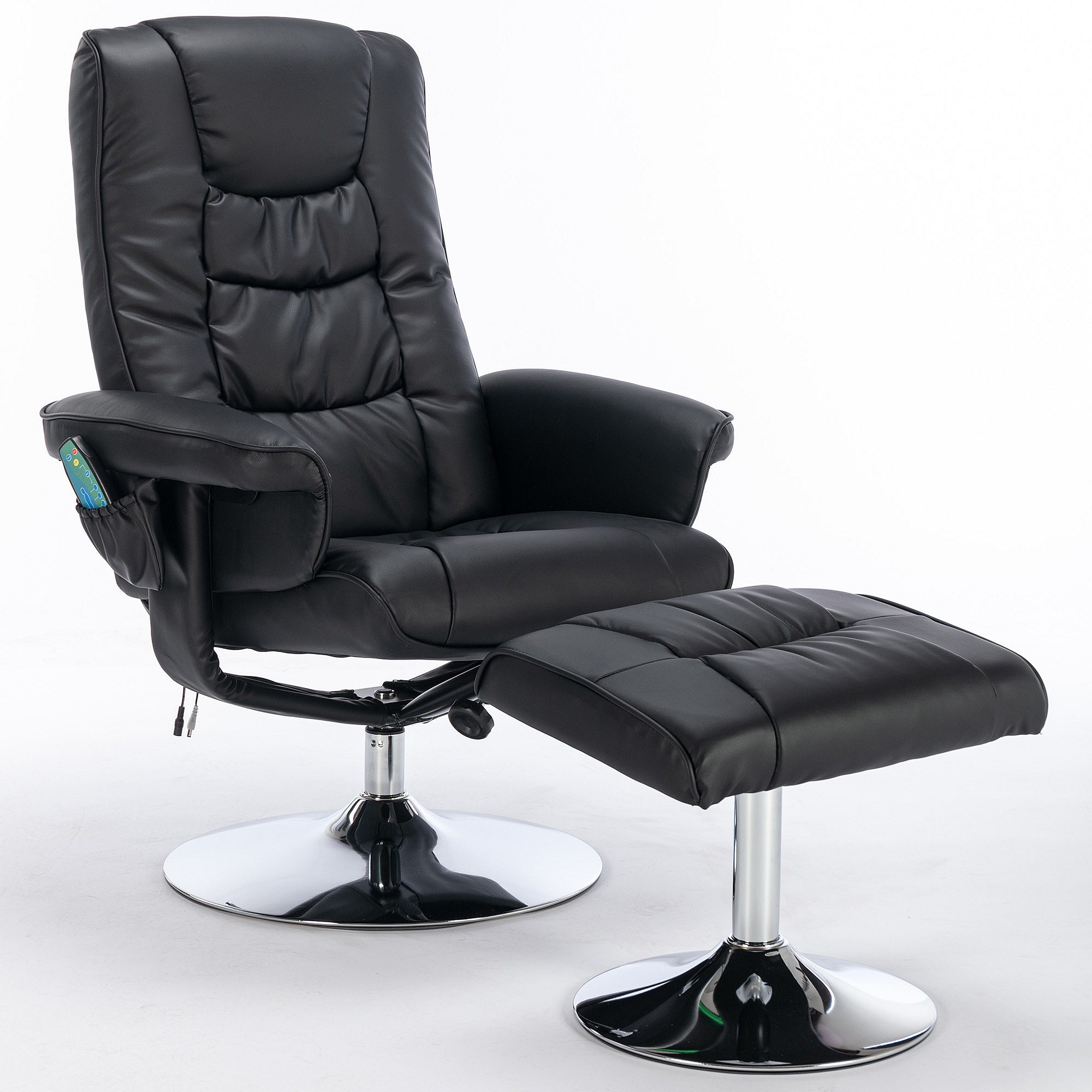 Poltrona de massagem em PU com apoio para os pés de 5 pontos para sala de estar, quarto, preta