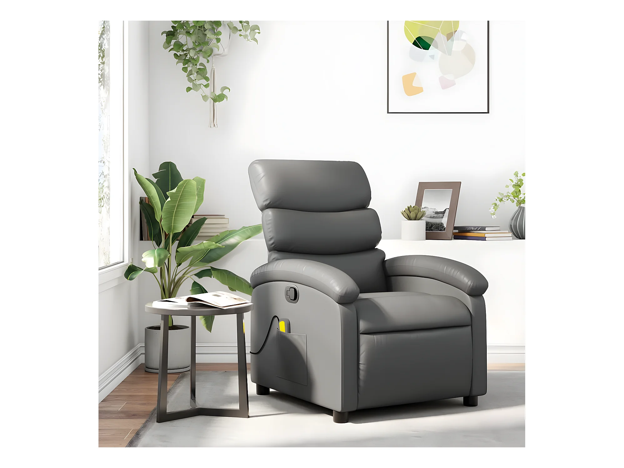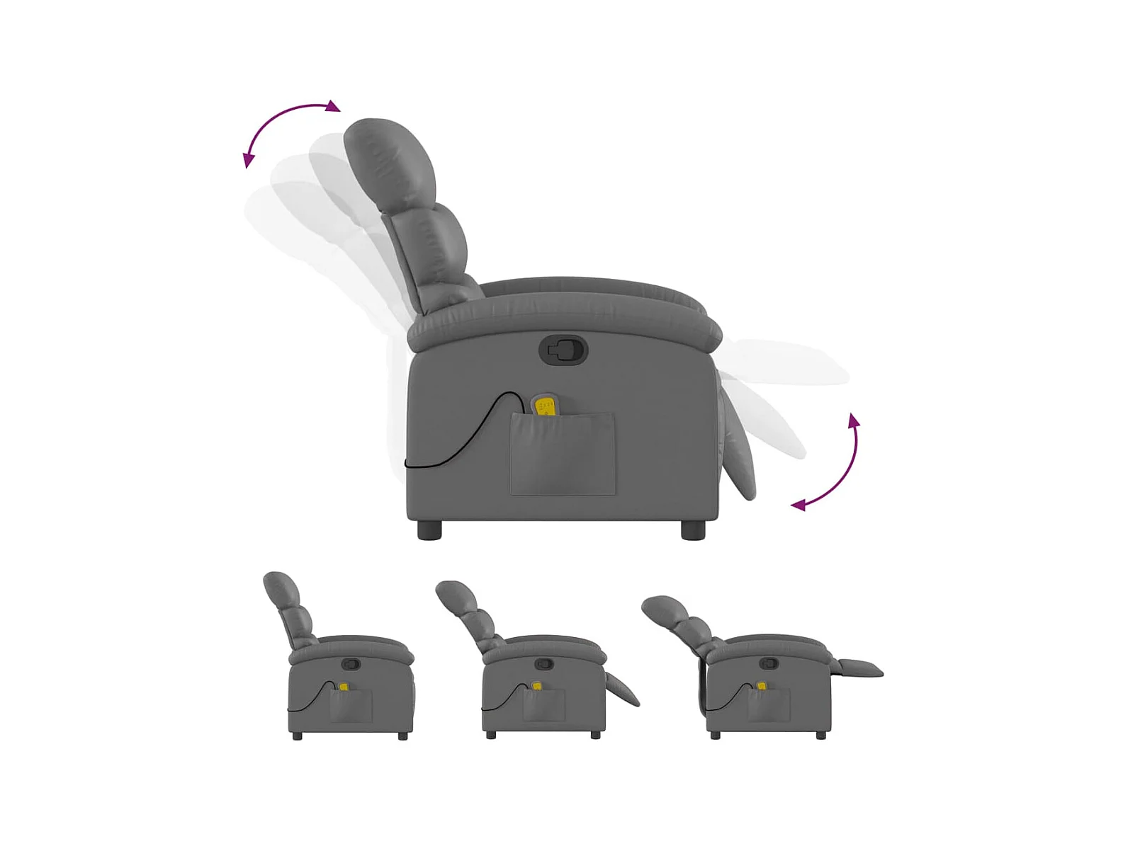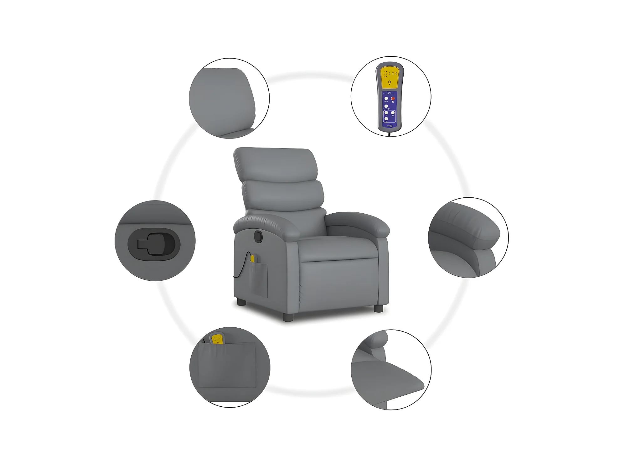 Poltrona de massagem reclinável cinza couro sintético