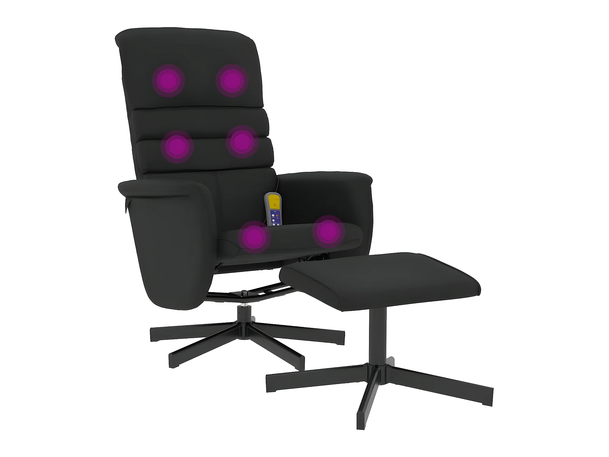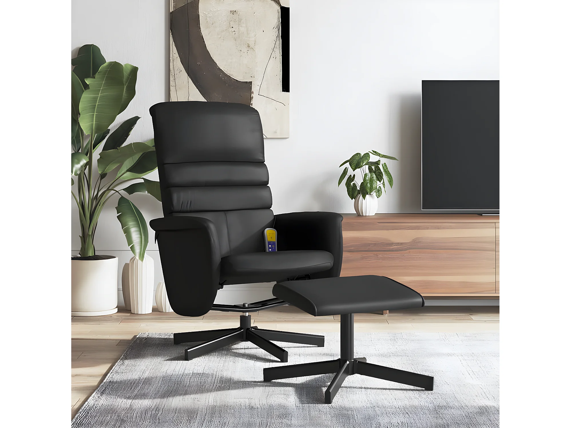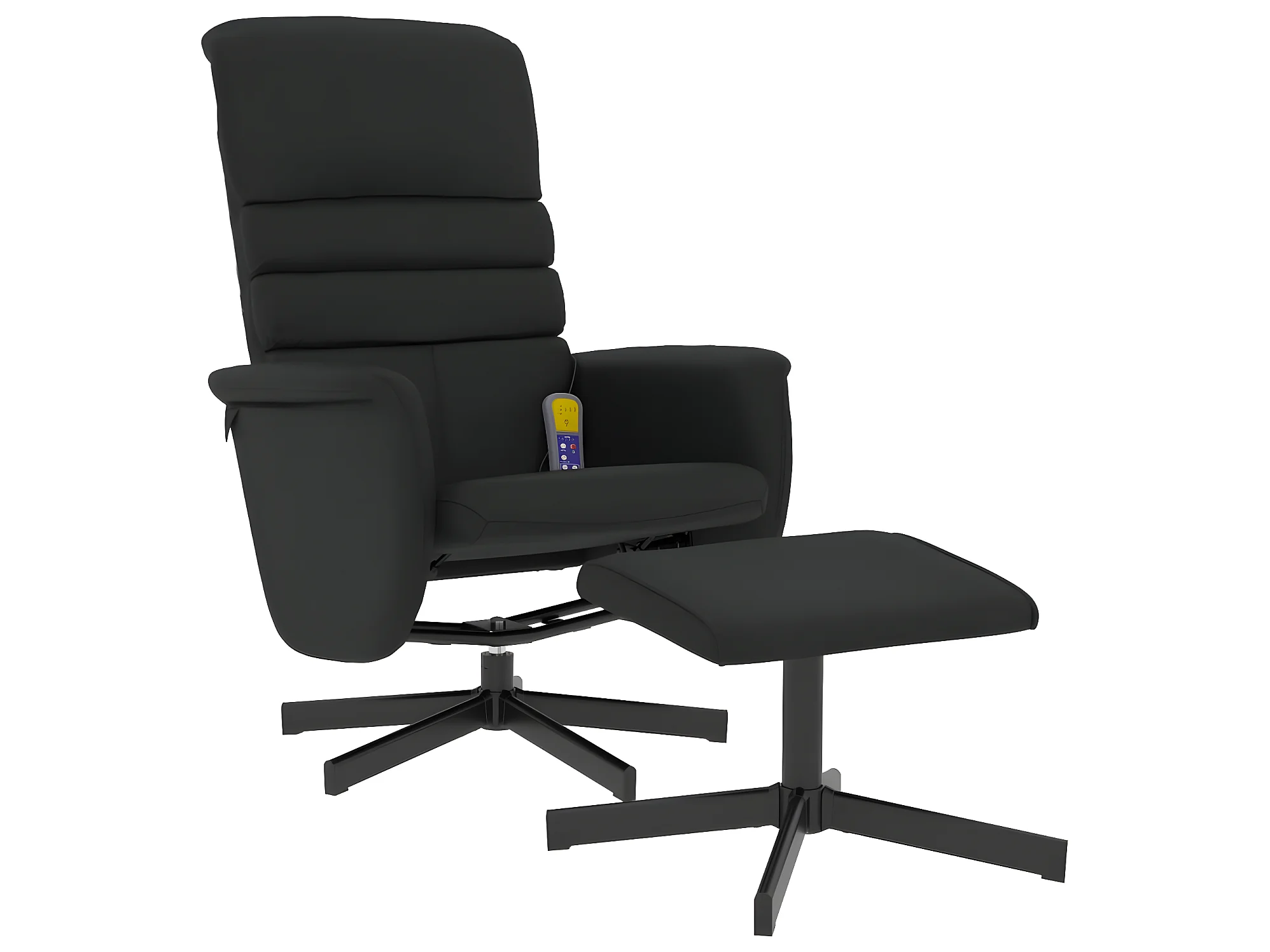 Poltrona de massagem reclinável com apoio para os pés em couro sintético preto