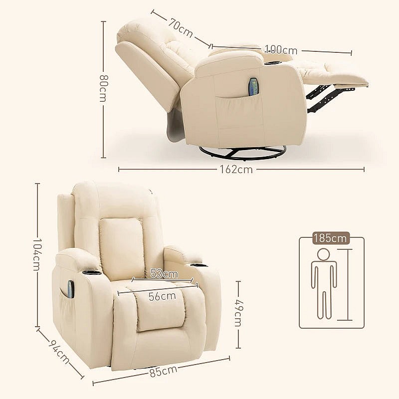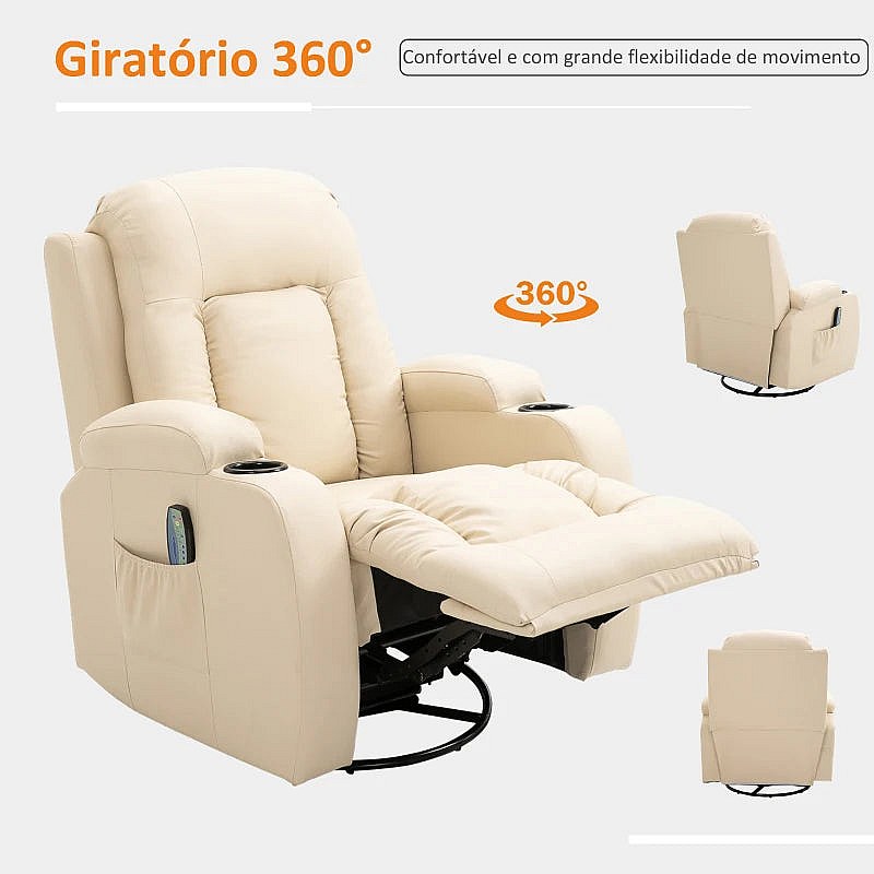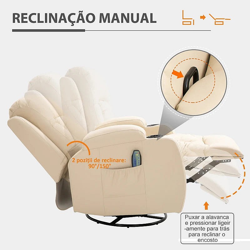 Poltrona de Massagem Reclinável com Aquecimento e Controle Remoto - 8 Pontos de Massagem - 150° - Creme