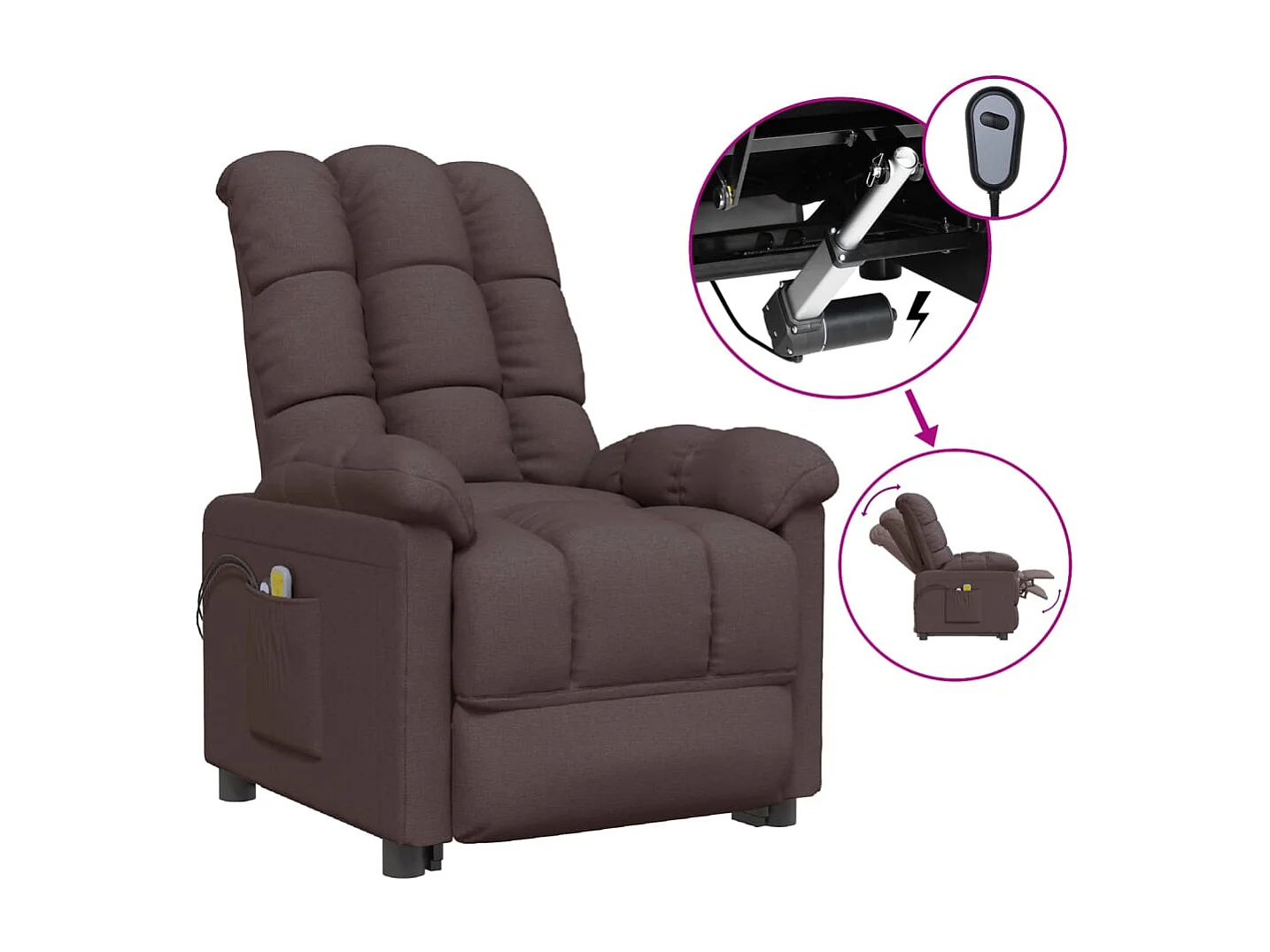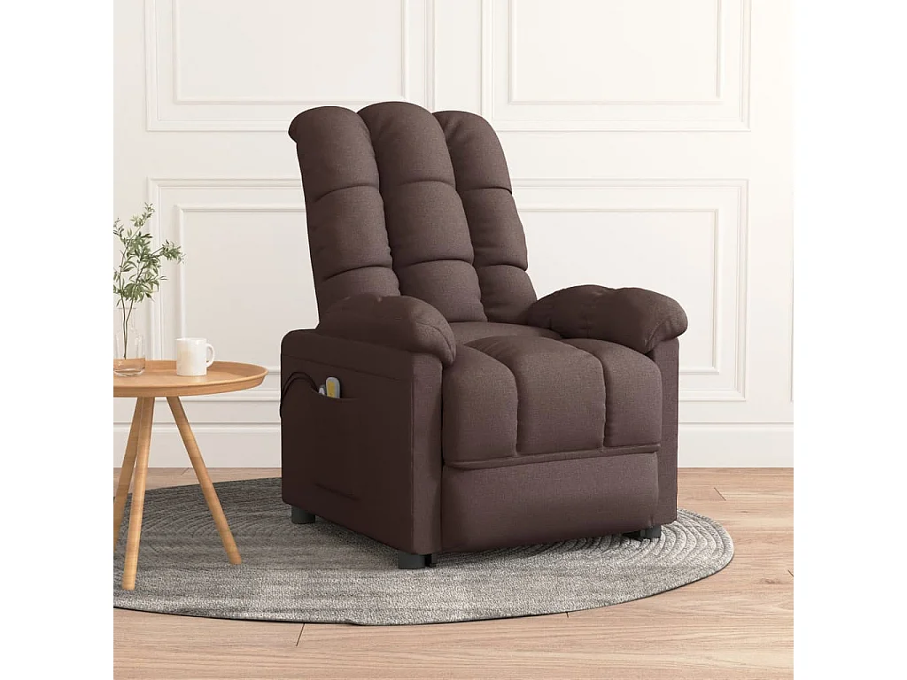 Poltrona massagens reclinável elevatória tecido castanho-escuro